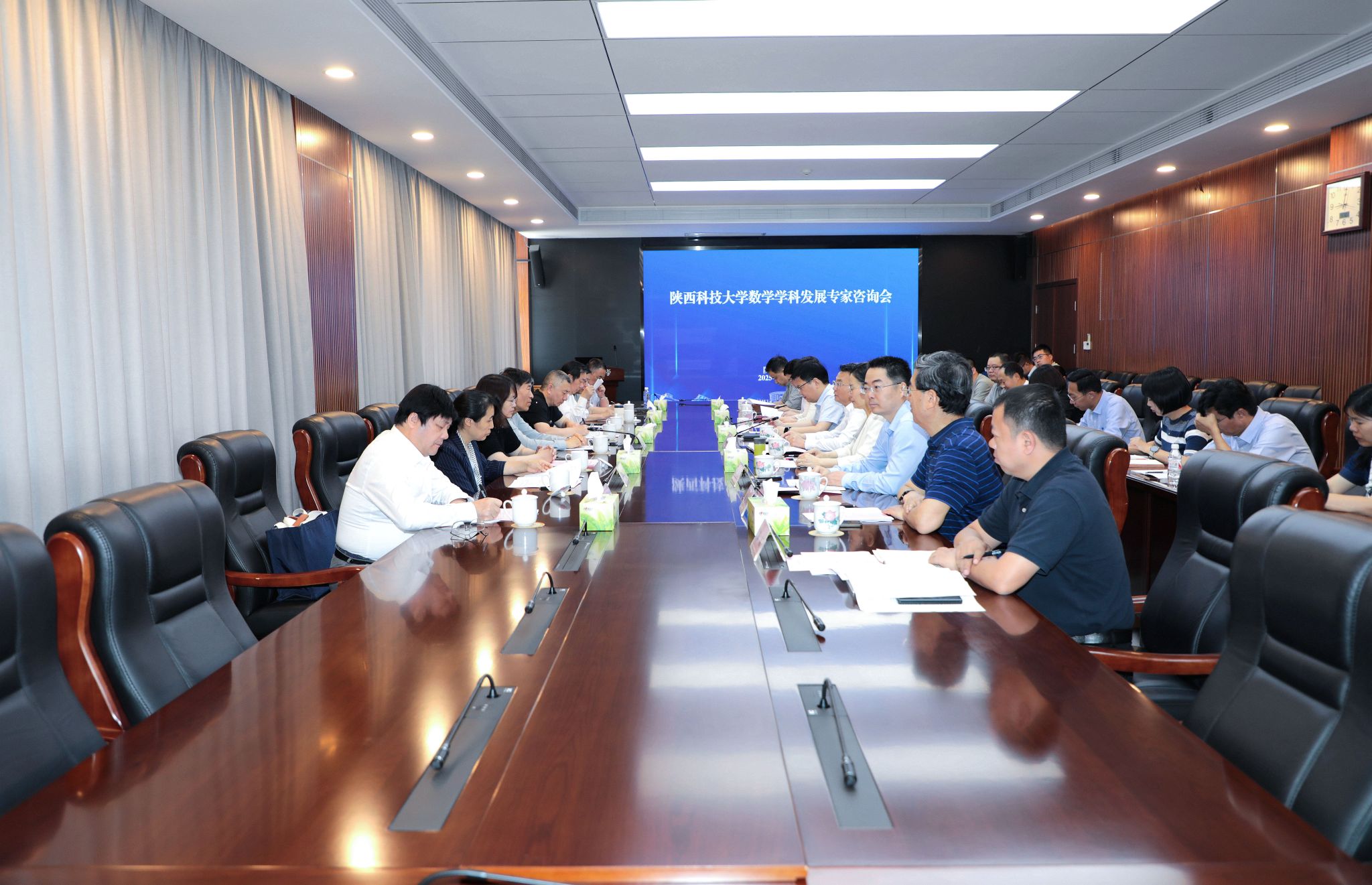 為落實學(xué)校“雙一流”建設(shè)目標,推動數(shù)學(xué)學(xué)科高質(zhì)量發(fā)展,5月13日上午,學(xué)校召開數(shù)學(xué)學(xué)科發(fā)展專家咨詢會,黨委書記樊建武出席會議并致辭,副校長陸趙情主持會議。來自西安交通大學(xué)、中山大學(xué)、四川大學(xué)、武漢大學(xué)、南京大學(xué)、廈門大學(xué)等高校知名專家學(xué)者,我校學(xué)科建設(shè)辦公室、研究生院、科技處主要負責人,數(shù)學(xué)與數(shù)據(jù)科學(xué)學(xué)院班子成員、學(xué)科帶頭人和青年學(xué)術(shù)骨干共30余人參加會議。