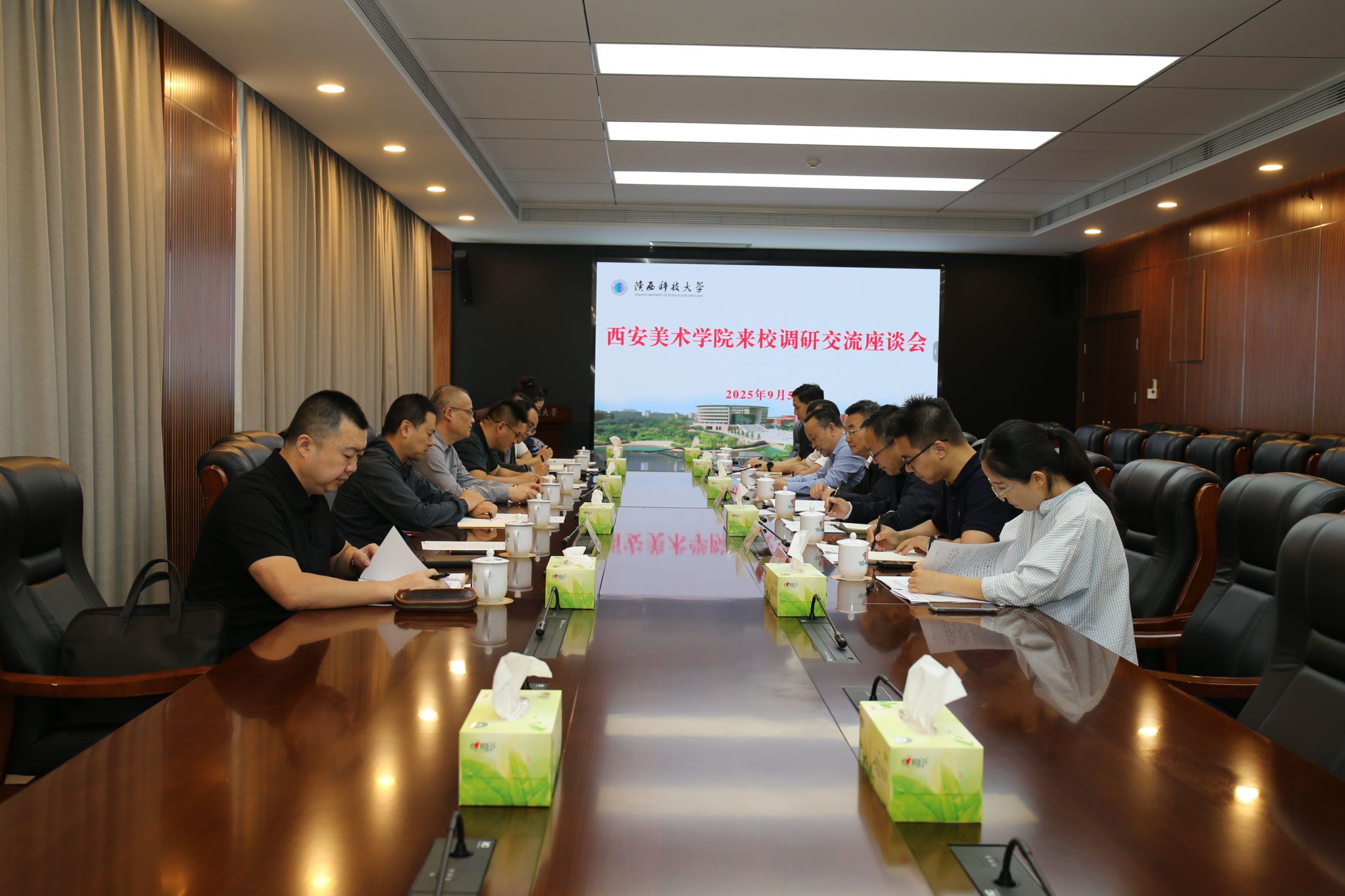 9月5日,西安美術(shù)學(xué)院黨委書記丁巨濤一行來陜西科技大學(xué)調(diào)研并開展座談交流。陜西科技大學(xué)黨委書記樊建武出席會議并致辭,黨委副書記王道安主持會議。