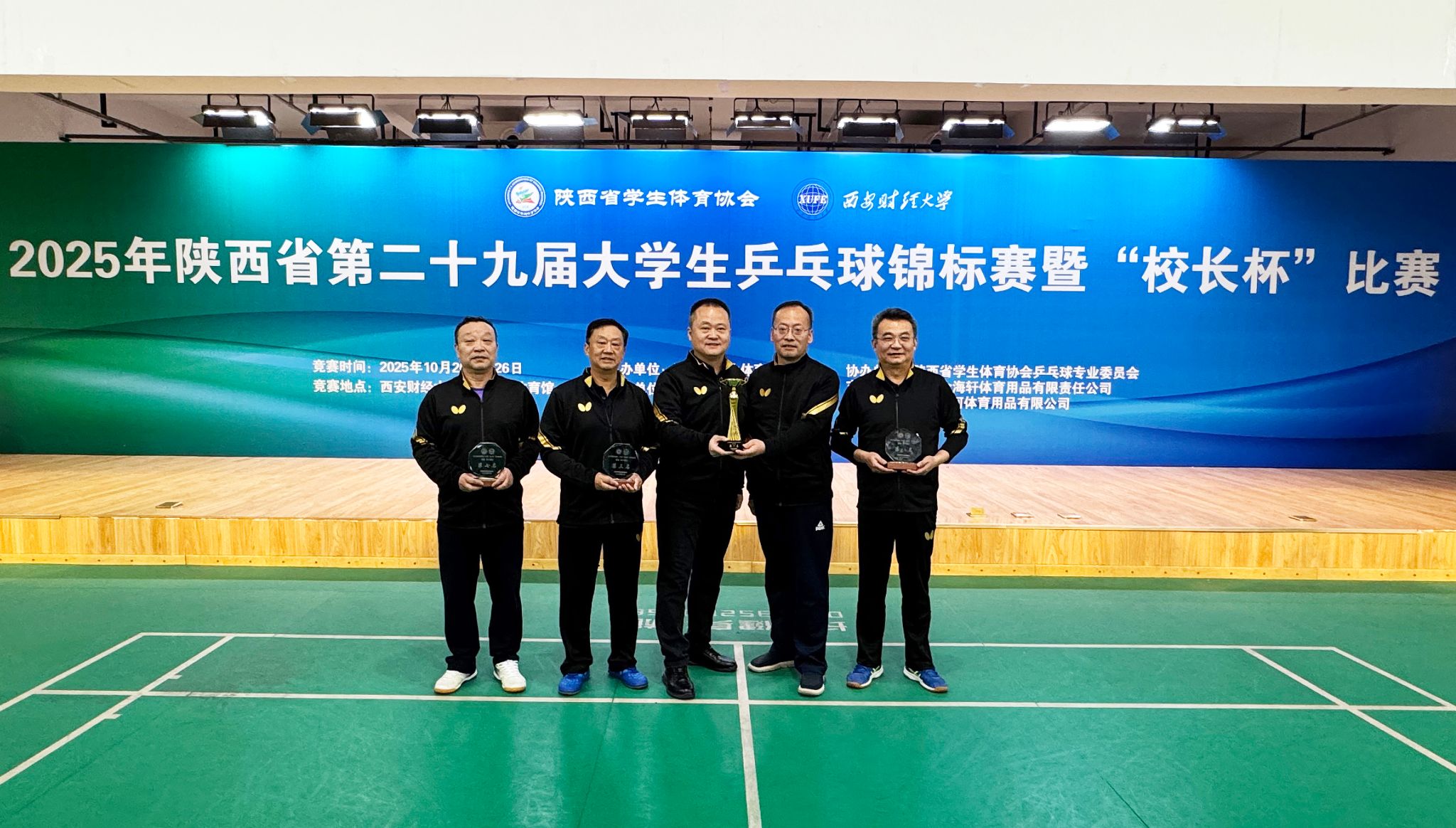 10月25日至26日,陜西省第二十九屆“校長(zhǎng)杯”乒乓球賽在西安財(cái)經(jīng)大學(xué)舉行。陜西科技大學(xué)代表隊(duì)以全勝的戰(zhàn)績(jī)勇奪團(tuán)體冠軍,創(chuàng)下學(xué)校在此項(xiàng)賽事中的歷史最好成績(jī)。