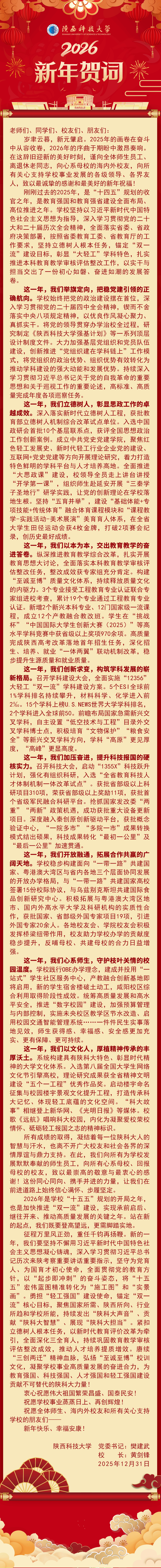 陜西科技大學(xué)2026年新年賀詞