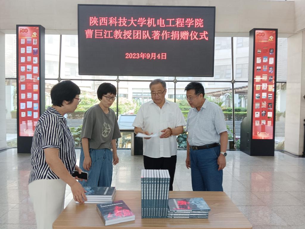 9月4日上午,我校機(jī)電工程學(xué)院(智能制造與機(jī)器人工程學(xué)院)自動(dòng)機(jī)械研究所曹巨江教授團(tuán)隊(duì)著作捐贈(zèng)儀式在圖書館舉行。圖書館館長(zhǎng)王海剛,副館長(zhǎng)鄭勇、趙小羽,辦公室主任周育紅,曹巨江教授及團(tuán)隊(duì)成員等參加了捐贈(zèng)儀式。