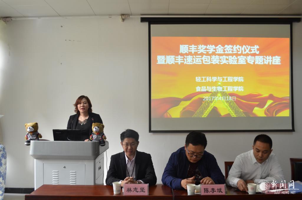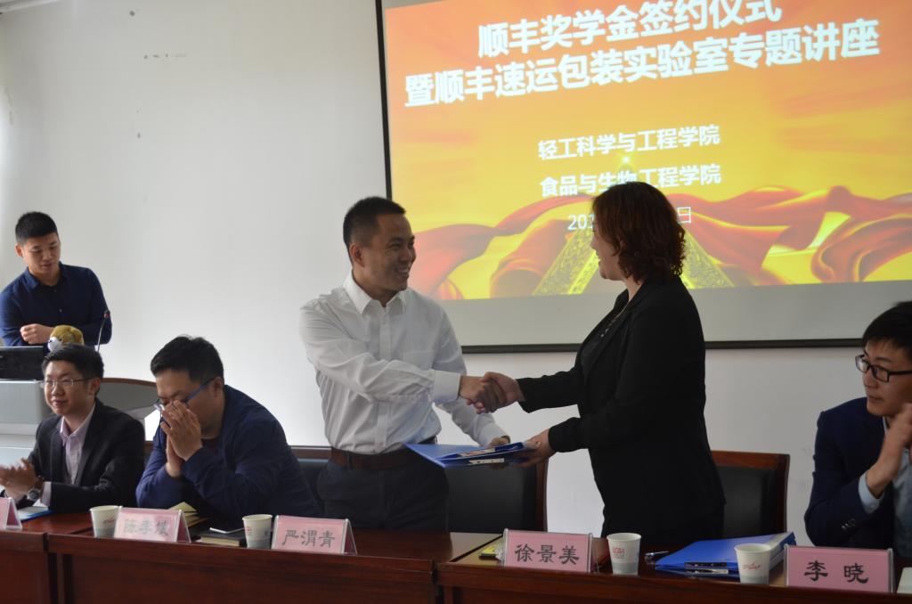 4月18日,順豐企業(yè)獎學(xué)金在我校輕工科學(xué)與工程學(xué)院、食品與生物工程學(xué)院設(shè)立。兩個學(xué)院聯(lián)合舉辦了獎學(xué)金簽約儀式,相關(guān)院領(lǐng)導(dǎo)、順豐速運包裝實驗室負(fù)責(zé)人徐景美、順豐速運人才管理處人才管理高級經(jīng)理張燕、順豐集團招聘組招聘高級經(jīng)理李少強、林志堅出席儀式。