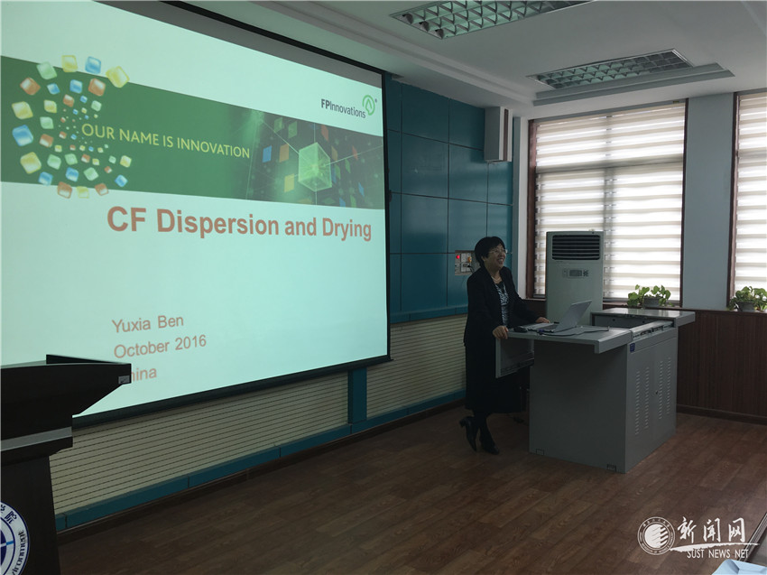 10月13日,應我校輕工科學與工程學院的邀請,加拿大林產(chǎn)品創(chuàng)新研究院(FPInnovations-原加拿大造紙研究院)研究員賁玉霞博士和米歇爾·瑞米德(Michelle Ricard)來輕工學院作了“導師論壇”系列學術報告。報告會由輕工學院副院長張素風教授主持。