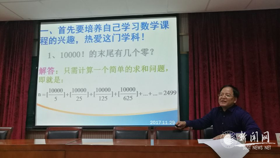 11月29日下午,應我校研究生院和文理學院邀請,西北大學博士生導師張文鵬教授在文理學院學術報告廳為我校師生作了題為“刻苦學習,完善自我---怎樣學好數(shù)學”的學術報告。文理學院數(shù)學教師、高年級學生、研究生與電信學院部分教師、研究生到場聆聽了此次報告,報告會由文理學院院長藺小林教授主持。