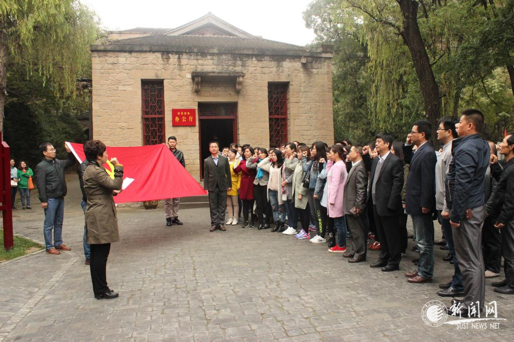學習的第二站是楊家?guī)X和棗園革命舊址,楊家?guī)X和棗園是中共中央領導1938年至1947年辦公居住的地方,抗日戰(zhàn)爭的政治指揮中心,中央書記處五位領導的塑像威風顯赫,舊址內(nèi)還保留著當年毛澤東同志種過的菜地。站在這一排排陳設簡陋的窯洞前,仿佛重回到那段艱苦卓絕的歲月里,看到中國共產(chǎn)黨人帶領全國軍民艱苦奮斗,自力更生,豐衣足食的動人場景。在楊家?guī)X中央辦公廳舊址前,全體黨員舉行了重溫入黨誓詞宣誓活動。