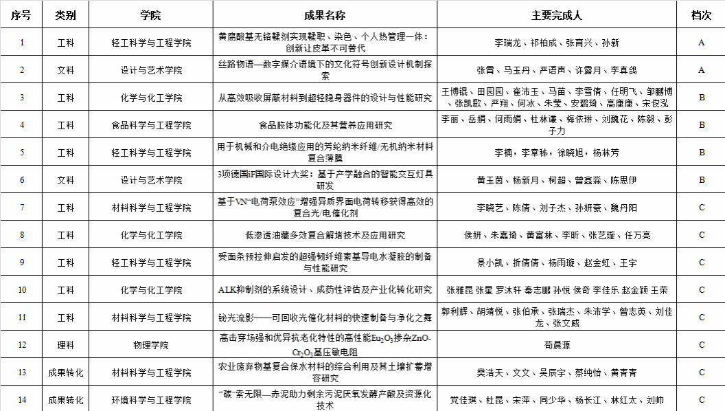 近日,省教育廳、省學(xué)位委員會(huì)公布陜西省第九屆研究生創(chuàng)新成果展高質(zhì)量成果名單,我校共有14項(xiàng)成果榮登榜單,其中A檔2項(xiàng)、B檔4項(xiàng)、C檔8項(xiàng)。我校獲評(píng)“表現(xiàn)突出單位”。