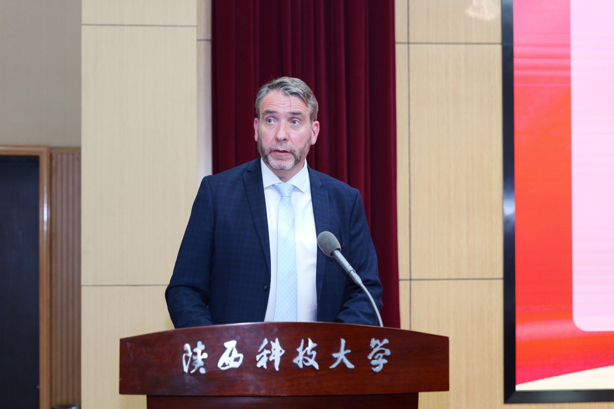 9月2日下午,阿爾斯特學(xué)院在圖書館報(bào)告廳舉行2025級(jí)新生開學(xué)典禮。陜西科技大學(xué)副校長(zhǎng)費(fèi)貴強(qiáng),阿爾斯特大學(xué)副校長(zhǎng)Colin Turner,陜西科技大學(xué)國際合作與交流處處長(zhǎng)張素風(fēng),阿爾斯特學(xué)院黨政班子成員,學(xué)院全體教職工、中外方教師代表及2025級(jí)全體新生參加典禮。典禮由阿爾斯特學(xué)院常務(wù)副院長(zhǎng)王偉偉主持。