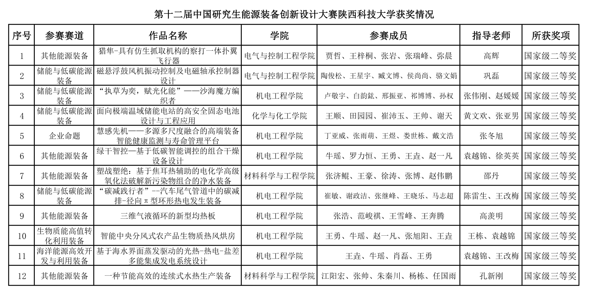 本屆大賽突出綠色導(dǎo)向、工程導(dǎo)向與產(chǎn)業(yè)導(dǎo)向,全面升級(jí)賽題與配套活動(dòng),打造服務(wù)國(guó)家能源安全和“雙碳”戰(zhàn)略的重要實(shí)踐平臺(tái)。全國(guó)共有309個(gè)培養(yǎng)單位的2435支團(tuán)隊(duì)參賽,經(jīng)專家函評(píng),745支隊(duì)伍晉級(jí)決賽。我校10支隊(duì)伍參加決賽,經(jīng)過(guò)展板展示、現(xiàn)場(chǎng)答辯和評(píng)審,共獲12項(xiàng)國(guó)家級(jí)獎(jiǎng)項(xiàng),彰顯了在新能源領(lǐng)域的科研實(shí)力與人才培養(yǎng)成效,展現(xiàn)了陜科大學(xué)子科技報(bào)國(guó)、助力輕工強(qiáng)國(guó)建設(shè)的使命擔(dān)當(dāng)和勇于創(chuàng)新的時(shí)代風(fēng)貌。