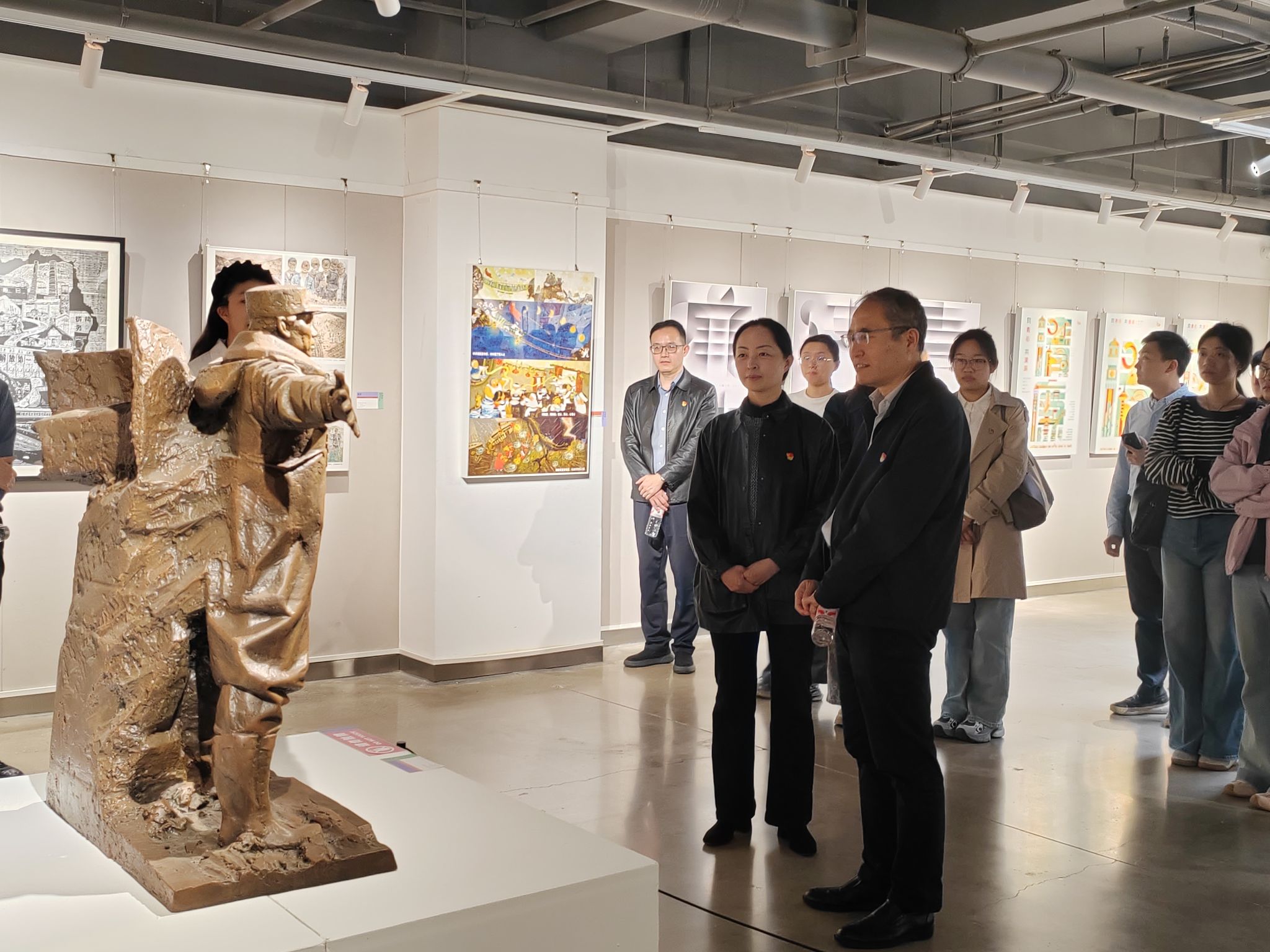 活動首站設(shè)在人文樓一層絲路文化與創(chuàng)新設(shè)計展廳。黨員同志們集中觀看了“良渚杯”首屆大學(xué)生廉潔文化藝術(shù)大賽優(yōu)秀作品西北地區(qū)巡展與陜西科技大學(xué)第六屆廉潔文化藝術(shù)大賽優(yōu)秀作品展。展覽作品以藝術(shù)語言生動詮釋廉潔理念,弘揚(yáng)崇廉尚潔的價值導(dǎo)向,為校園文化建設(shè)注入精神給養(yǎng)和清廉之風(fēng)。