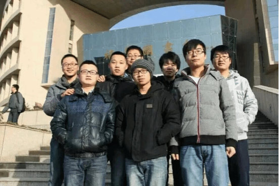 大學(xué)時(shí)期白雷(右一)與同學(xué)們在圖書館前合照