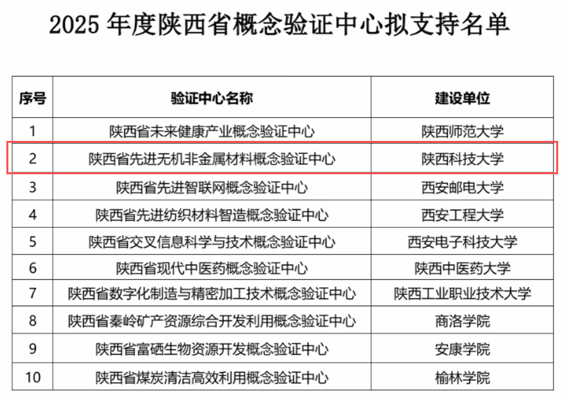 近日,陜西省科學(xué)技術(shù)廳公布了新一輪省級(jí)概念驗(yàn)證中心名單,陜西科技大學(xué)申報(bào)的“陜西省先進(jìn)無(wú)機(jī)非金屬材料概念驗(yàn)證中心”成功獲批。這標(biāo)志著我校在科技成果轉(zhuǎn)化和創(chuàng)新平臺(tái)建設(shè)方面邁出了重要一步,為服務(wù)區(qū)域科技創(chuàng)新與產(chǎn)業(yè)升級(jí)提供了新的支撐。