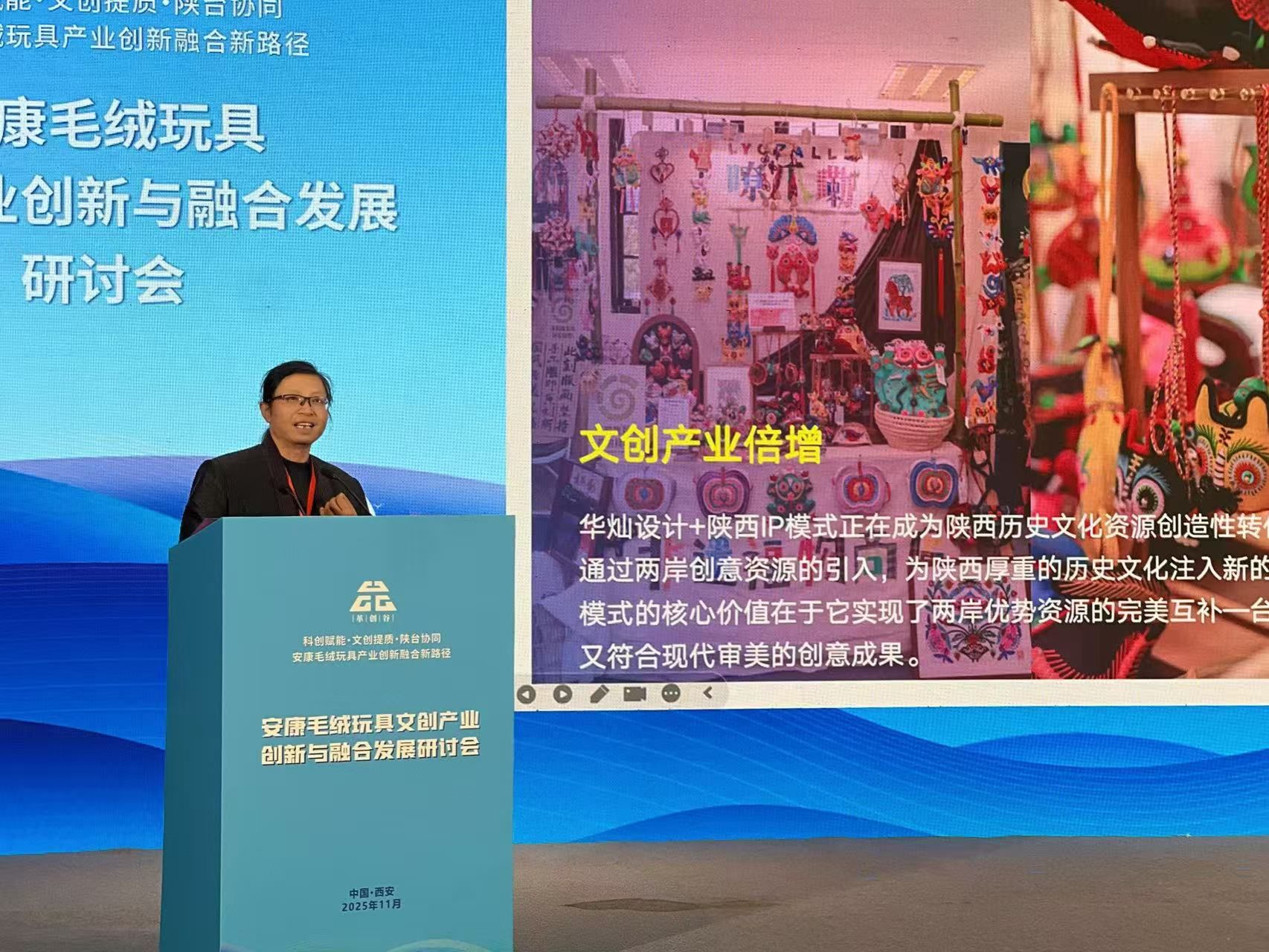 本次大會(huì)設(shè)有人工智能與半導(dǎo)體前沿技術(shù)協(xié)同創(chuàng)新研討會(huì)和安康毛絨玩具文創(chuàng)產(chǎn)業(yè)創(chuàng)新與融合發(fā)展研討會(huì)兩個(gè)分會(huì)場(chǎng)。在安康毛絨玩具文創(chuàng)產(chǎn)業(yè)創(chuàng)新與融合發(fā)展研討會(huì)上,設(shè)計(jì)與藝術(shù)學(xué)院院長(zhǎng)劉宗明進(jìn)行活動(dòng)發(fā)言并主持分會(huì)場(chǎng)圓桌會(huì)議。