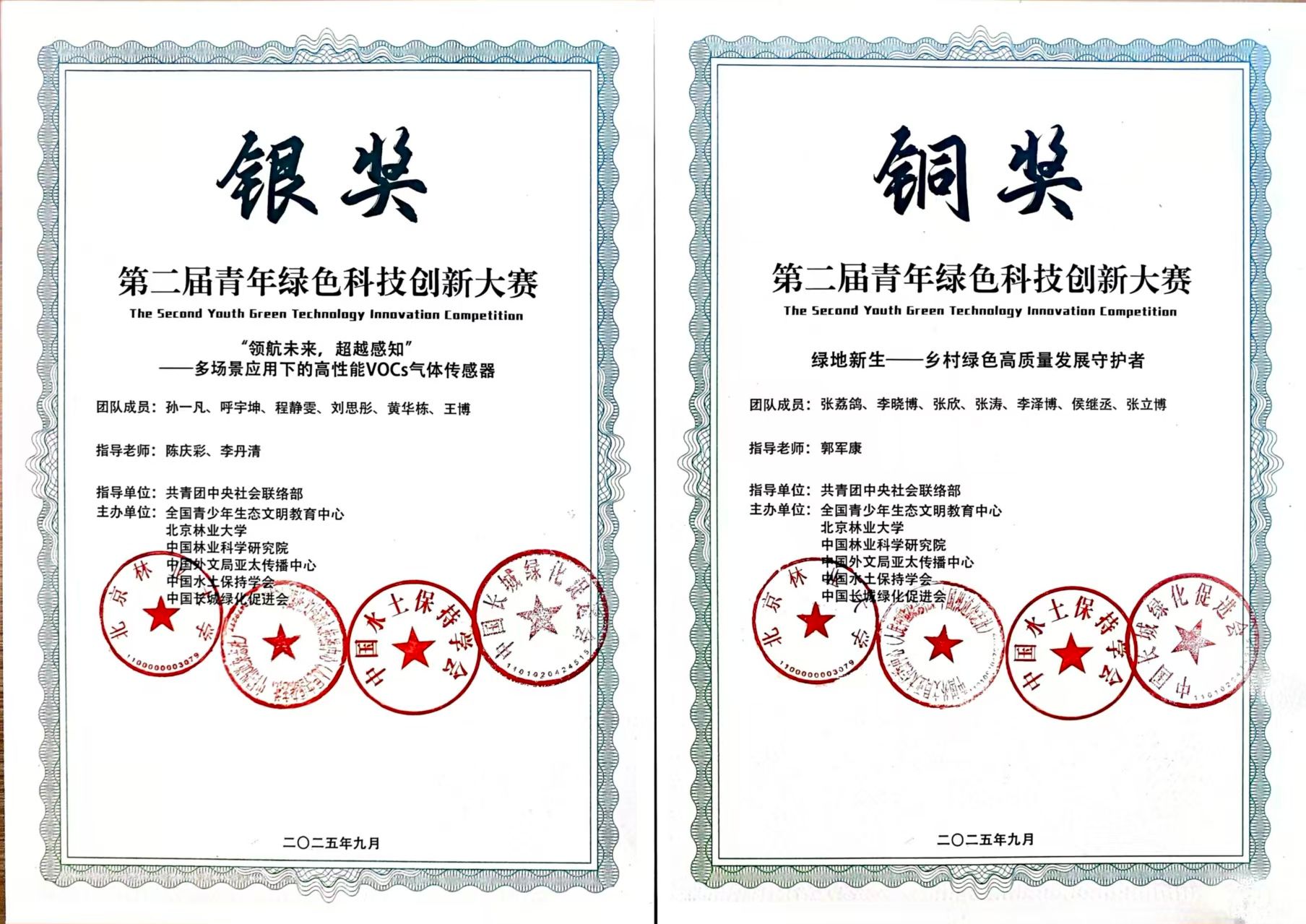 近日,由共青團(tuán)中央社會(huì)聯(lián)絡(luò)部指導(dǎo),全國(guó)青少年生態(tài)文明教育中心、北京林業(yè)大學(xué)、中國(guó)林業(yè)科學(xué)研究院等6家單位聯(lián)合舉辦的第二屆青年綠色科技創(chuàng)新大賽結(jié)果揭曉,我校環(huán)境科學(xué)與工程學(xué)院的《“領(lǐng)航未來(lái),超越感知”——多場(chǎng)景應(yīng)用下的高性能VOCs氣體傳感器》獲評(píng)銀獎(jiǎng),《綠地新生——鄉(xiāng)村綠色高質(zhì)量發(fā)展守護(hù)者》獲評(píng)銅獎(jiǎng)。