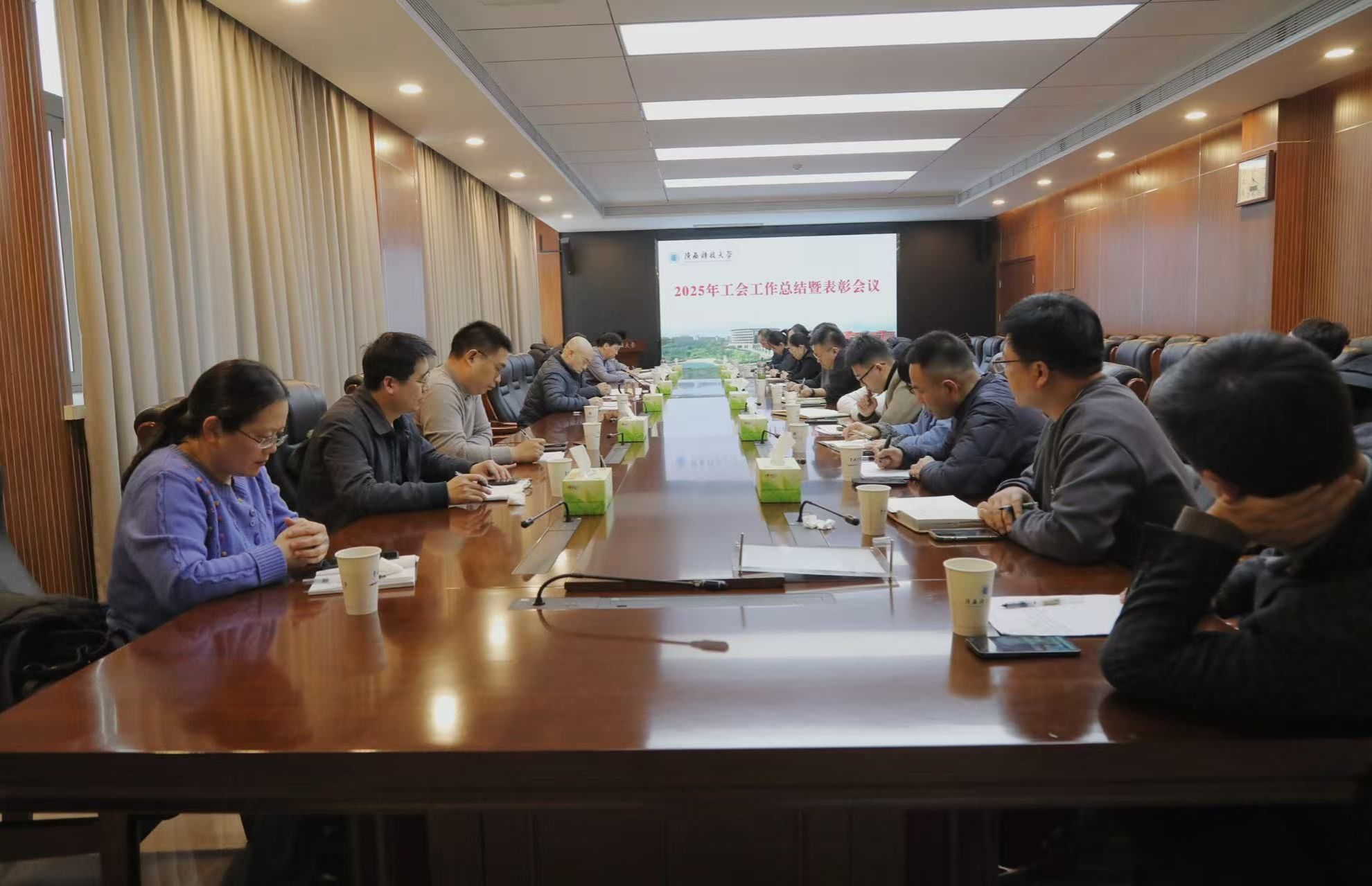 12月31日下午,陜西科技大學(xué)2025年度工會工作總結(jié)暨表彰會順利召開。黨委副書記王道安出席會議并講話,對工會下一步工作作出全面部署。校工會委員會委員、各分會主席及工會全體工作人員參加會議,會議由校工會主席雷如主持。