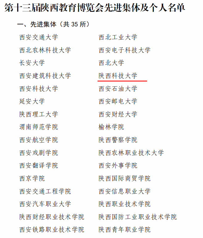 近日,陜西教育博覽會(huì)組委會(huì)發(fā)布《陜西教育博覽會(huì)組委會(huì)關(guān)于表彰第十三屆陜西高等教育博覽會(huì)先進(jìn)集體和個(gè)人的通報(bào)》文件,陜西科技大學(xué)獲評(píng)“先進(jìn)集體”。