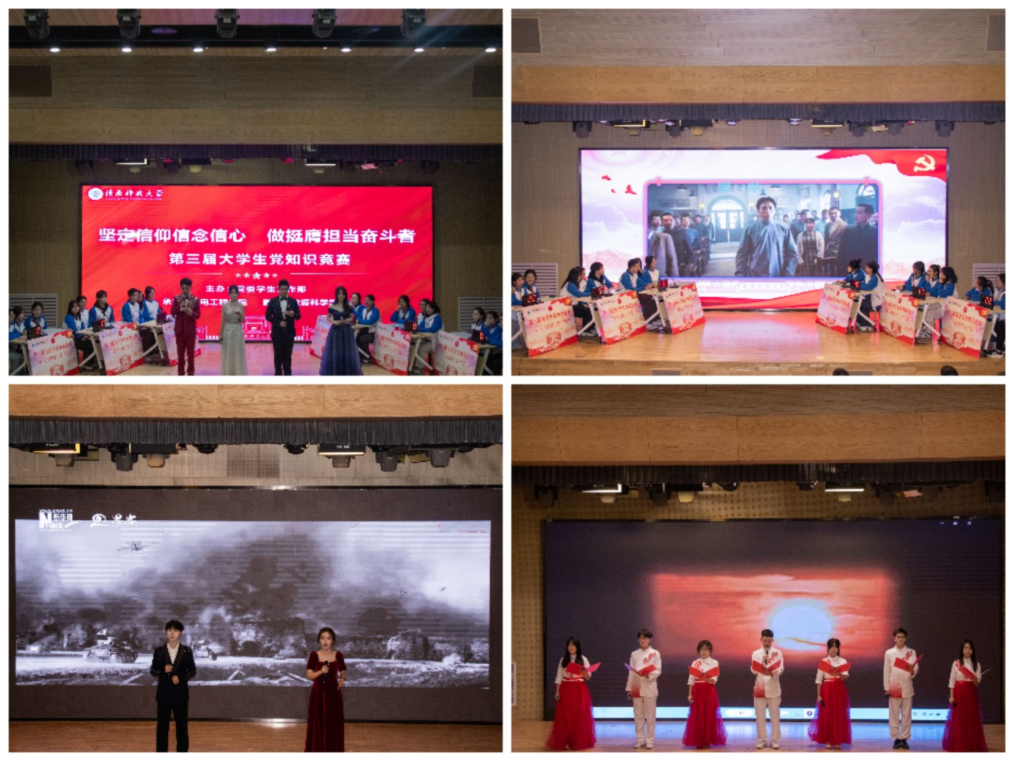 為持續(xù)推動(dòng)大學(xué)生黨史學(xué)習(xí)教育常態(tài)化長(zhǎng)效化,以“堅(jiān)定信仰信念信心、做挺膺擔(dān)當(dāng)奮斗者”為主題的第三屆大學(xué)生黨知識(shí)競(jìng)賽決賽于12月24日晚在設(shè)計(jì)與藝術(shù)學(xué)院小劇場(chǎng)舉辦。黨委組織部、黨委學(xué)工部有關(guān)負(fù)責(zé)人出席活動(dòng),有關(guān)學(xué)院黨委副書記、各學(xué)院大學(xué)生黨建專項(xiàng)輔導(dǎo)員及150余名學(xué)生黨員、發(fā)展對(duì)象、入黨積極分子代表現(xiàn)場(chǎng)觀摩了決賽。