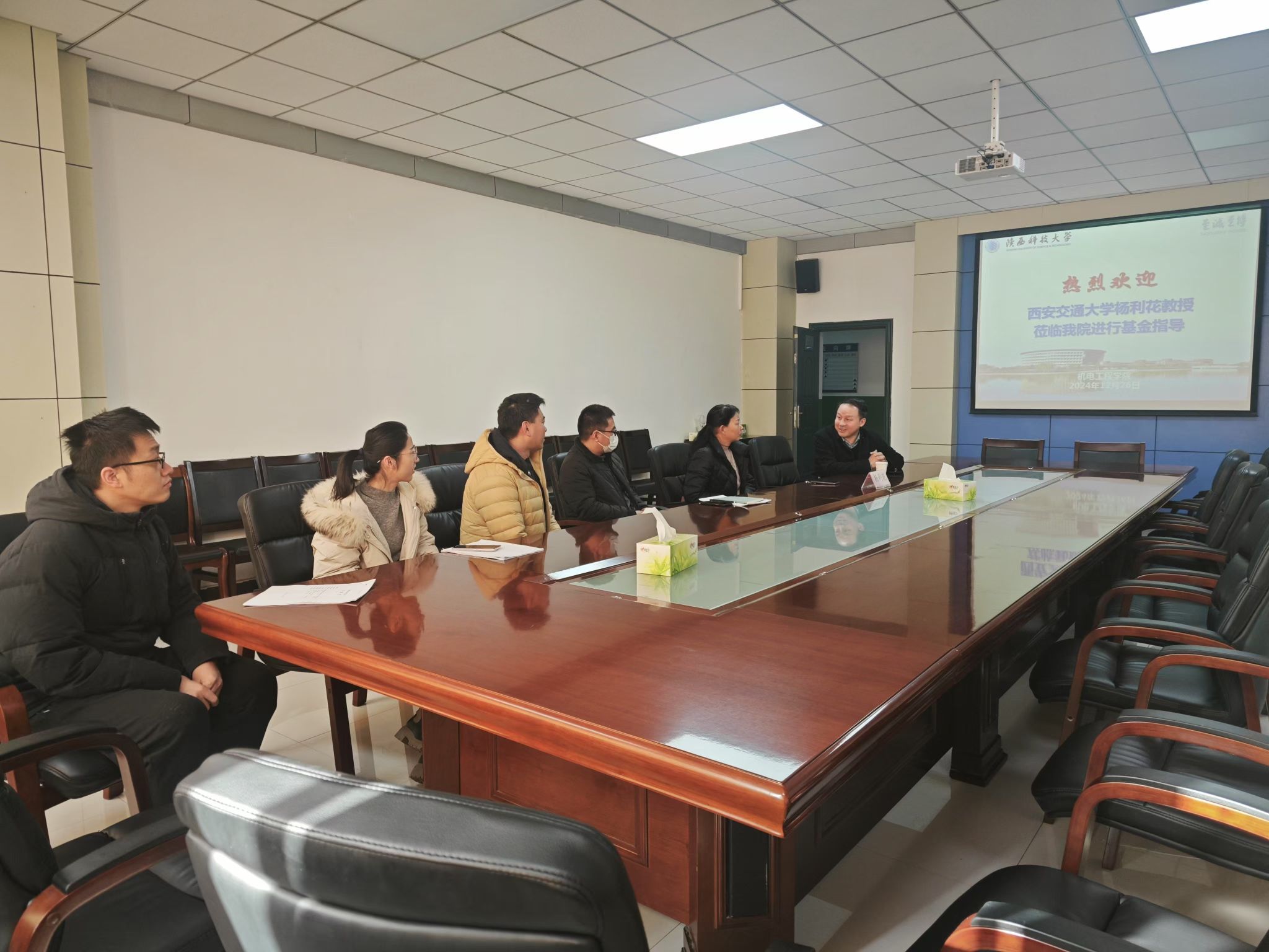 袁越錦對(duì)楊利花的到來(lái)表示熱烈歡迎,首先介紹了機(jī)電學(xué)院近年來(lái)的發(fā)展情況和所取得的科研成果。同時(shí)表示機(jī)電學(xué)院科研工作的高效開展快速進(jìn)步離不開西安交通大學(xué)等陜西標(biāo)桿高校的幫助。