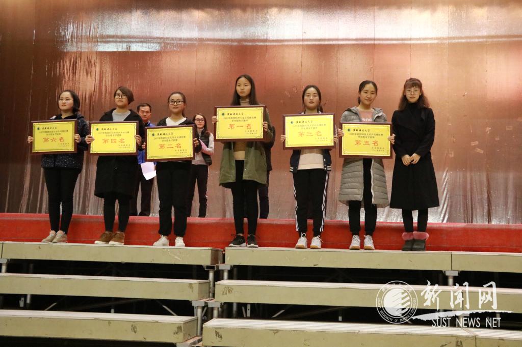 女子團體一至六名:機電學院、文理學院、電信學院、食品學院、設(shè)藝學院、環(huán)境學院。