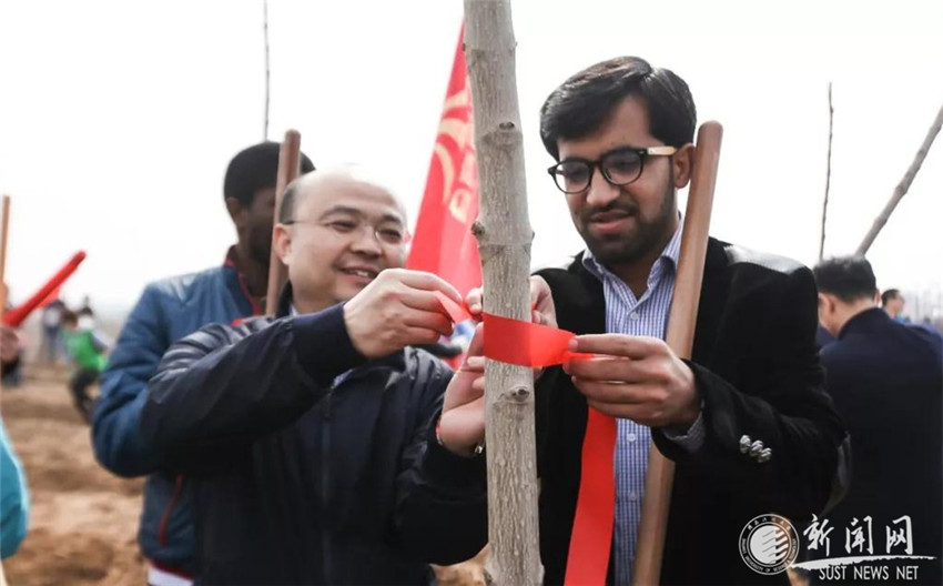伴隨著第40個全民義務(wù)植樹節(jié)的來臨,我校國際合作與交流處組織8名留學(xué)生參加了第三屆“世界絲路·美麗中國”公益植樹活動,國際處副處長薛朝華參加活動并為“陜西科技大學(xué)絲路公益植樹基地”揭牌。此次公益植樹活動在“一帶一路”倡議指引下,以“綠色大美陜西,共享國際友誼”為主題。
