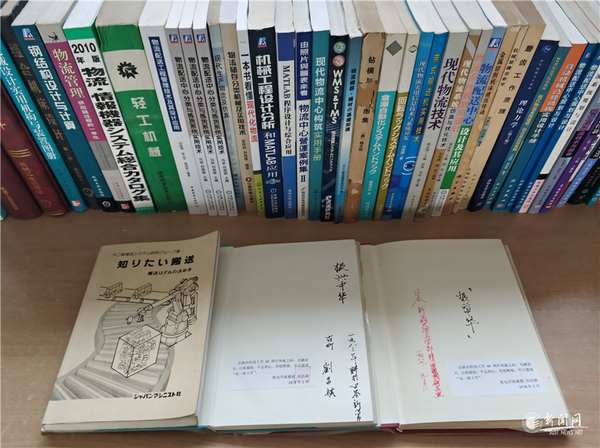 在幾本日文書籍的扉頁上,還可以看到劉老師工整書寫的“振興中華”四個字,劉老師說:“這是當年在日本留學時含淚寫下的,上世紀八十年代國家經(jīng)濟困難,我們這一批留學生深知自己責任重大,省吃儉用,把省下來的錢拿去買書,刻苦學習,就是為了報效祖國,振興中華?!边@四個字,正體現(xiàn)了老一代輕院人的愛國情懷和赤子之心。作為機電工程學院工業(yè)工程與物流專業(yè)的創(chuàng)始人之一,劉昌祺教授十分關心專業(yè)的發(fā)展,并積極幫助青年教師發(fā)展,退休后仍舊筆耕不輟,先后出版專著17本,為國家物流裝備技術的發(fā)展貢獻了自己的力量。