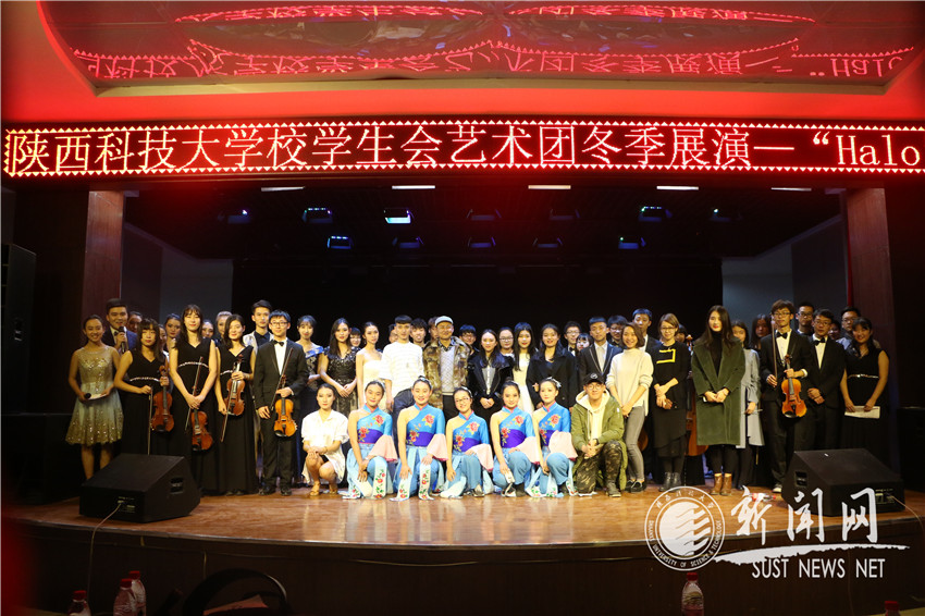 近日,由校團(tuán)委主辦,學(xué)生會(huì)藝術(shù)團(tuán)承辦的“陜西科技大學(xué)2016年大學(xué)生藝術(shù)團(tuán)冬季展演——HALO”在大學(xué)生活動(dòng)中心成功舉辦。本次展演以“多彩青春,筑夢科大”為主題,是由我校大學(xué)生藝術(shù)團(tuán)的話劇團(tuán)、民舞隊(duì)、拉丁舞隊(duì)、街舞隊(duì)、聲樂隊(duì)、管弦樂團(tuán)、模特禮儀隊(duì)七支表演隊(duì)伍舉辦的聯(lián)合展演。演出當(dāng)晚,藝術(shù)團(tuán)精心組織編排的節(jié)目為我校師生們帶來了一場視聽盛宴。