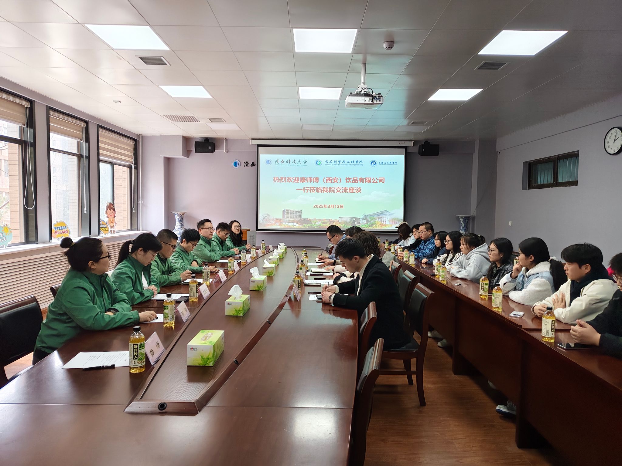 3月12日下午,康師傅(西安)飲品有限公司食品安全總監(jiān)王秋峰一行來我校食品科學與工程學院開展合作交流。學院黨委副書記孫敏、專任教師陳劍、輔導員及學生代表參加座談會。