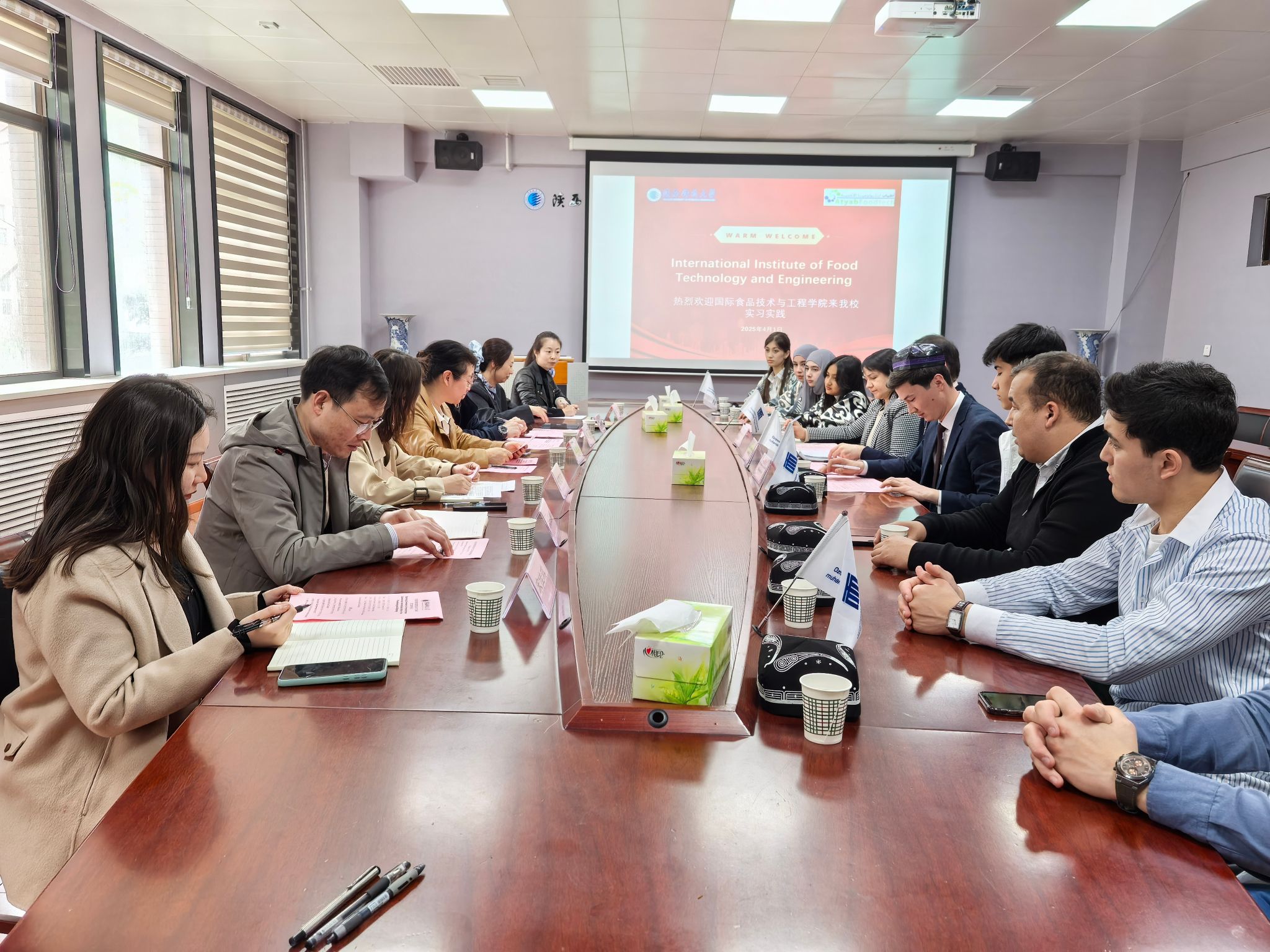 近日,烏茲別克斯坦國際食品技術(shù)與工程學院代表團抵達陜西科技大學,正式開啟為期17天的實習實踐活動。4月1日,學校舉行了開班儀式,國際處處長張素風、食品學院相關(guān)負責人、烏方國際處處長Shokh等出席會議。