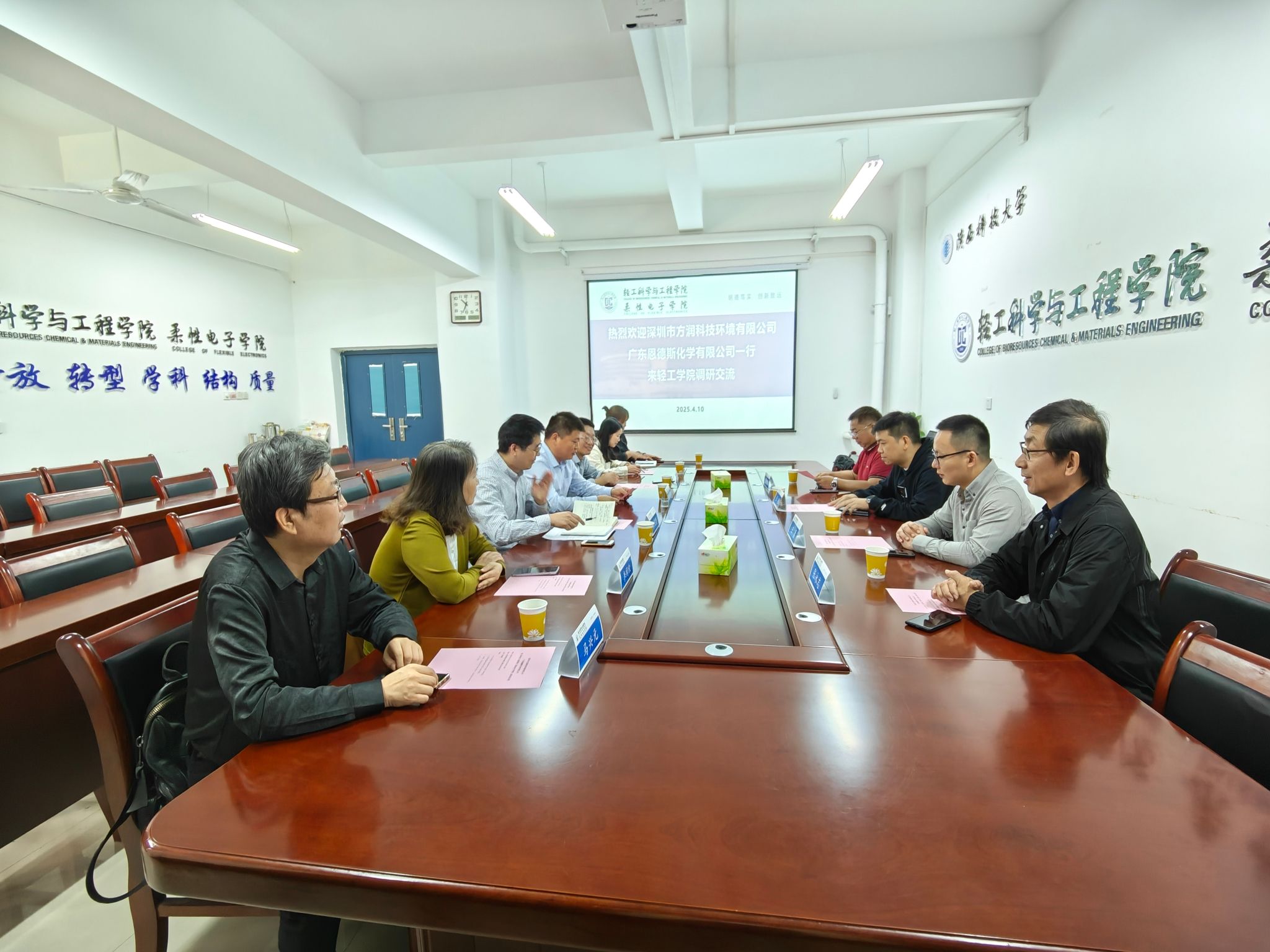 4 月 10日,廣東恩德斯化學(xué)有限公司董事長張剛( 輕化研10)、廣東恩德斯化學(xué)有限公司生產(chǎn)廠長王勇(輕化05)、廣東恩德斯化學(xué)有限公司真皮事業(yè)部項目經(jīng)理、廣東皮革校友會秘書長曾旭東(皮革91)一行7人返校,開展回訪母校、座談交流、校園招聘等一系列活動。