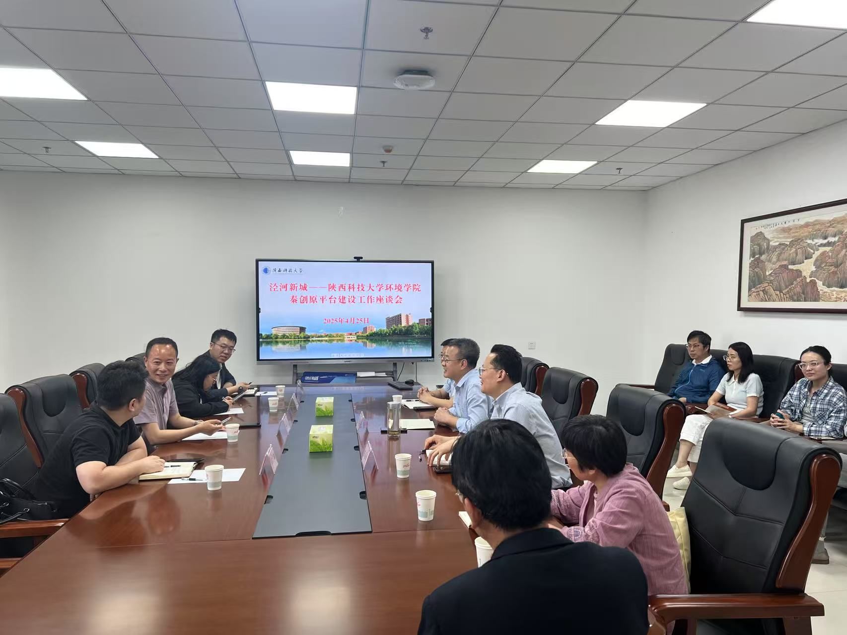 會上,郭軍康對汪東一行來訪表示熱烈歡迎,并從環(huán)境學(xué)院的發(fā)展現(xiàn)狀和近年來學(xué)院在科學(xué)研究、人才培養(yǎng)、服務(wù)社會等方面開展的工作和取得的成績做了詳細(xì)介紹,希望雙方建立起密切的合作伙伴關(guān)系,進(jìn)一步發(fā)揮高校在服務(wù)創(chuàng)新驅(qū)動發(fā)展戰(zhàn)略中的作用,通過學(xué)科鏈和產(chǎn)業(yè)鏈的聯(lián)動與市場對接。汪東介紹了西咸新區(qū)秦創(chuàng)原創(chuàng)新驅(qū)動發(fā)展(涇河)工作部的主要職責(zé),宣講了秦創(chuàng)原科創(chuàng)政策整體情況以及涇河新城產(chǎn)學(xué)研合作需求;高級主管顏乃鵬從“省、市、新區(qū)、新城”四級政策、科技計劃(項目)等方面宣講了涇河新城科技企業(yè)梯度培育相關(guān)事項。