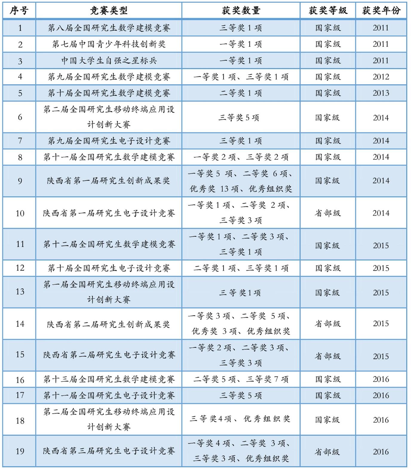 聚焦各類創(chuàng)新賽事,積極組織研究生參加教育部“研究生創(chuàng)新實踐系列活動”、陜西省研究生創(chuàng)新成果展等國家和地方學(xué)科競賽,近年來累計投入經(jīng)費240萬元,參加人數(shù)達到2100余人,先后斬獲國家級獎項45項,省部級獎項59項;其中在第一、二屆陜西省研究生創(chuàng)新成果展中獲一等獎8項,二等獎11項,優(yōu)秀獎16項,位列陜西省屬高校第一。