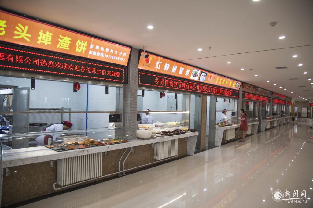據(jù)悉,新餐廳總共分地下一層、一層、二層,面積共有9000多平方米,可同時容納1200多人用餐,其中一層為風味餐廳,共有16家檔口。二層為調劑餐廳,主要為師生提供不同檔位的中式菜肴。另外,還將于7月份増設咖啡吧、水吧。