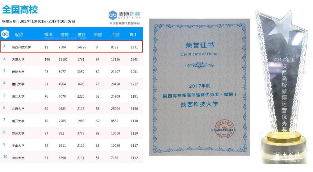 12月22日,由省委高教工委、省教育廳主辦,西安歐亞學(xué)院、陜西省教育新媒體研究院承辦的2017年陜西教育新媒體年會(huì)在西安歐亞學(xué)院召開。會(huì)議頒發(fā)了2017年度陜西教育新媒體運(yùn)營(yíng)獎(jiǎng)項(xiàng),我校獲2017陜西高校微博運(yùn)營(yíng)優(yōu)秀獎(jiǎng)。
