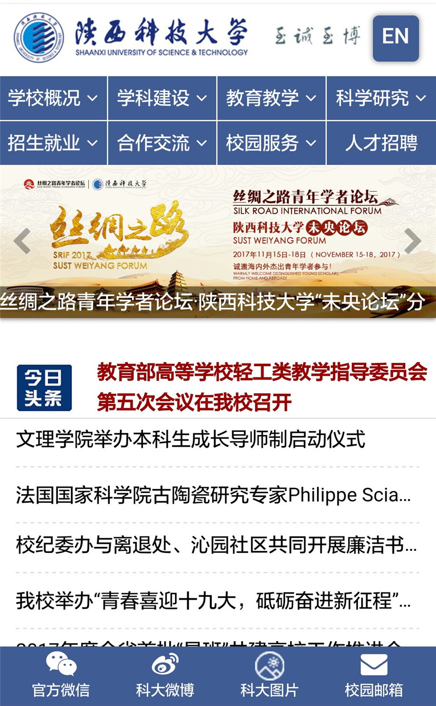 10月31日,陜西科技大學(xué)網(wǎng)站手機(jī)版試運(yùn)行開啟,全校師生員工和廣大校內(nèi)外人士動(dòng)動(dòng)手指,就能得到界面更加友好、互動(dòng)交流更加順暢、服務(wù)功能更加便捷的體驗(yàn)。