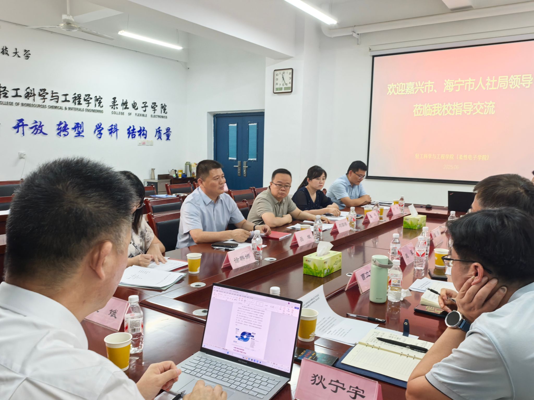 6月5日上午,嘉興市人力社保局四級(jí)調(diào)研員周樂(lè)、嘉興市人力社保局人才開(kāi)發(fā)處專(zhuān)技處處長(zhǎng)趙旻、嘉興市人力社保局專(zhuān)技處副處長(zhǎng)張飛龍、海寧市人力社保局副局長(zhǎng)曹立健、海寧市人力社保局專(zhuān)技科科長(zhǎng)金毅、東南大學(xué)化學(xué)化工學(xué)院焦真副教授、浙江博菲電氣股份有限公司副總經(jīng)理正高級(jí)工程師狄寧宇、浙江博菲電氣股份有限公司監(jiān)事會(huì)主席高級(jí)工程師凌斌等蒞臨我校輕工科學(xué)與工程學(xué)院,開(kāi)展博士后工作交流。學(xué)院院長(zhǎng)呂斌、副院長(zhǎng)劉國(guó)棟及相關(guān)系主任參加會(huì)議,會(huì)議由劉國(guó)棟教授主持。