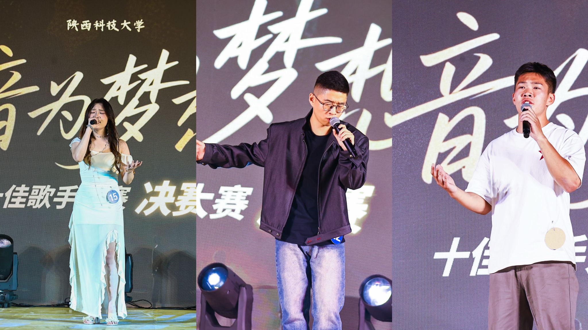 本次“音為夢想”校園十佳歌手大賽自5月啟動以來,吸引了全校200余名學(xué)生踴躍報名參賽,經(jīng)過學(xué)院推薦、大眾海選、復(fù)賽三個階段的激烈角逐,最終25名選手脫穎而出進入決賽。決賽當(dāng)晚,現(xiàn)場氣氛熱烈,觀眾熱情高漲,25名選手依次登臺獻唱,用歌聲詮釋青春夢想,展現(xiàn)科大學(xué)子的青春活力與藝術(shù)才華。決賽邀請西安交響樂團合唱團青年女高音演員脫凡、我省旅俄女中音歌唱家馬樂、寧夏師范大學(xué)聲樂教師徐學(xué)問、西安理工大學(xué)校團委馬青擔(dān)任評委。