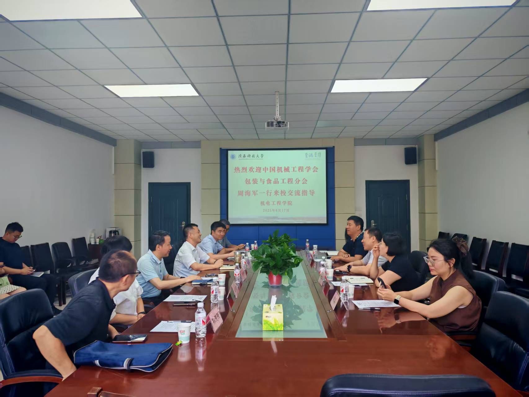 6月17日,中國機械工程學(xué)會包裝與食品工程分會主任委員周海軍、秘書長趙丹和中國包裝和食品機械有限公司副總經(jīng)理王世光一行來機電工程學(xué)院座談交流。此次交流會由學(xué)院副院長袁越錦主持,院長楊立軍、副院長何乃如,食品科學(xué)與工程學(xué)院莫海珍教授、輕工科學(xué)與工程學(xué)院孫德強教授等相關(guān)學(xué)院領(lǐng)導(dǎo)和教師參加了交流活動。