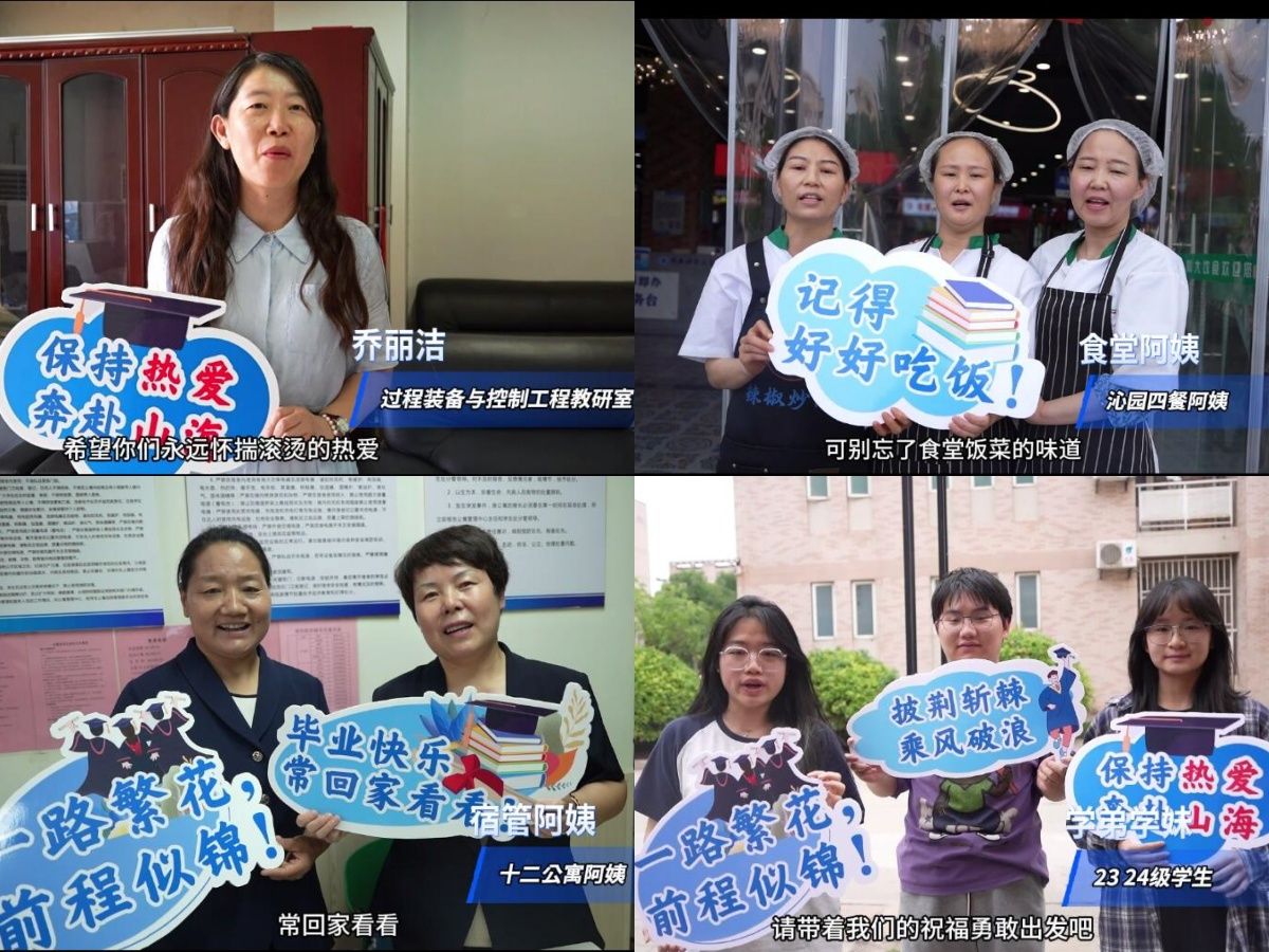 青春相伴憶芳華,畢業(yè)啟航送祝福。當蟬鳴攀上盛夏,又是鳳凰花開的季節(jié)。學(xué)院網(wǎng)絡(luò)文化中心用鏡頭記錄教研室老師、學(xué)弟學(xué)妹、食堂阿姨、宿管阿姨、保安叔叔對畢業(yè)生的深深祝福。有青春相伴的珍貴回憶,有前程似錦的真摯祝福,有“好好吃飯,天冷加衣”的暖心叮嚀,更有“畢業(yè)快樂,一路順風(fēng)”的溫情祝福與囑托。希望畢業(yè)生們帶著這些溫暖與力量觸碰山間的紋理,激蕩熱愛和勇氣,在自洽的氛圍里盡情肆意。