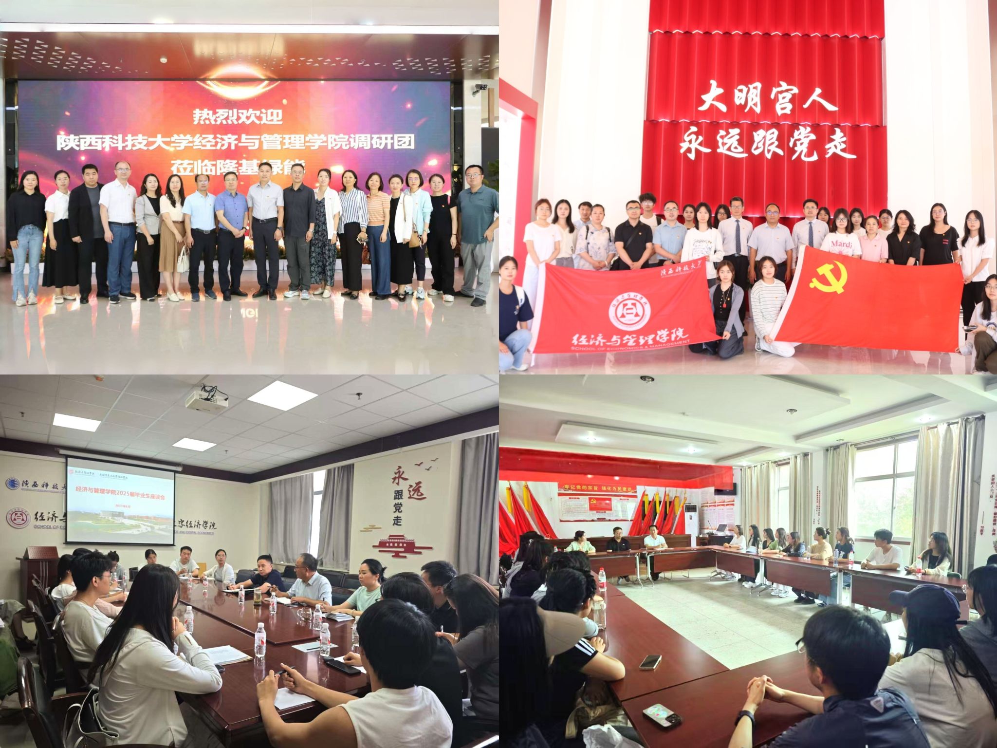 主題黨日踐使命,學(xué)做結(jié)合促發(fā)展。各支部立足實際扎實開展“強黨性、踐初心、正作風(fēng)、促發(fā)展”主題黨日活動。國貿(mào)師生黨支部聯(lián)合赴大明宮實業(yè)集團(tuán),以黨建引領(lǐng)校企協(xié)同育人;會計教工黨支部走進(jìn)隆基綠能,學(xué)習(xí)“黨建+”模式;辦公室、工管教工等支部以黨員過政治生日,讀書分享等形式深化學(xué)習(xí);研究生各黨支部到高陵區(qū)釣北村調(diào)研鄉(xiāng)村振興并參與勞動實踐;本科生黨支部組織開展讀書分享、主題演講及檔案封裝志愿服務(wù)。