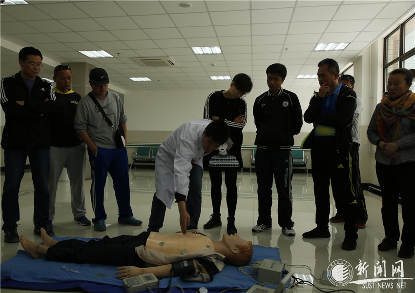 校醫(yī)院副院長樊虎杰首先向老師們講述了心臟驟停的判斷以及救援對于挽救生命的決定性作用,遇到突發(fā)狀況如何判定,如何實(shí)施安全急救的步驟及方法,介紹了人工呼吸、心臟外擠壓等常用急救技能方法。同時(shí)利用人體模型進(jìn)行了現(xiàn)場的講解、示范和演練,并說明正確的急救方法和需要注意的事項(xiàng),急救事例中個(gè)別救生員錯(cuò)誤技術(shù)動作等。