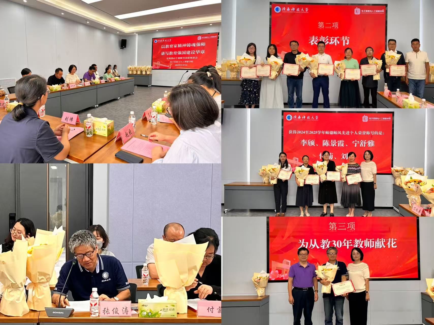9月9日至10日,在第41個教師節(jié)來臨之際,電智學(xué)院開展系列慶祝活動,通過選樹典型、表彰先進、師生互動等多種形式,大力弘揚教育家精神,營造尊師重教、崇智尚學(xué)的濃郁氛圍,全面展現(xiàn)學(xué)院師德師風(fēng)建設(shè)成果。