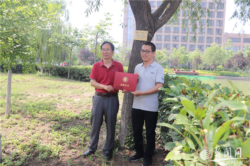 陳福生向校友們簡要介紹了校友林建設(shè)情況,并代表學校對校友的捐贈表示衷心的感謝,同時向校友代表一一頒發(fā)了捐贈證書。莘莘學子心,深深母校情,樹木認捐表達了校友們對母校的摯愛、關(guān)心與支持,他希望各位校友能夠和母校共同發(fā)展,發(fā)揚陜科大“三創(chuàng)兩遷”精神,不忘初心,在自己的工作崗位上腳踏實地、積極進取、勇攀高峰。