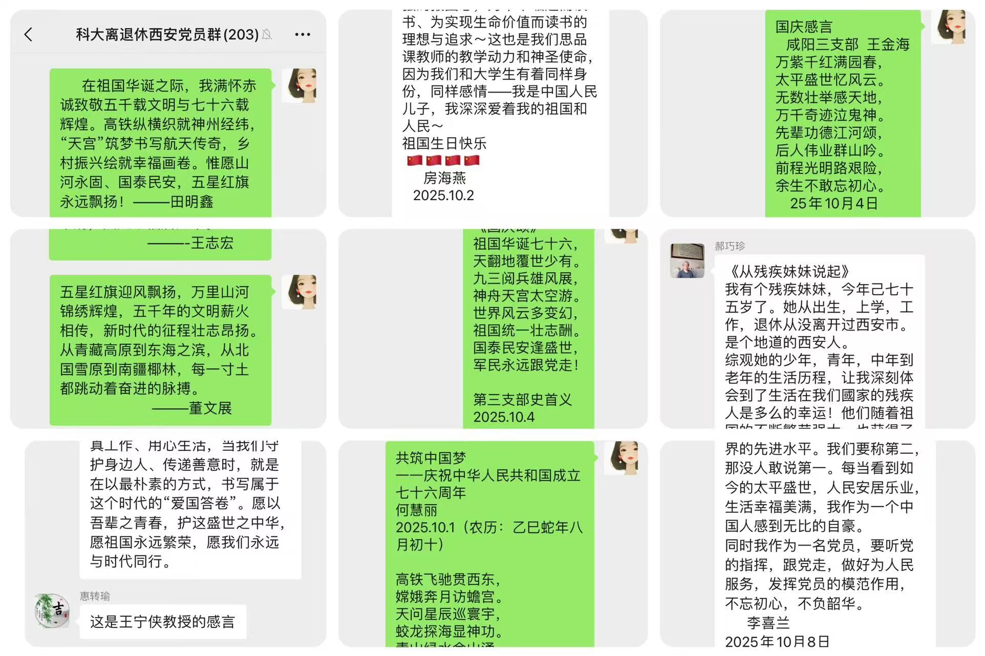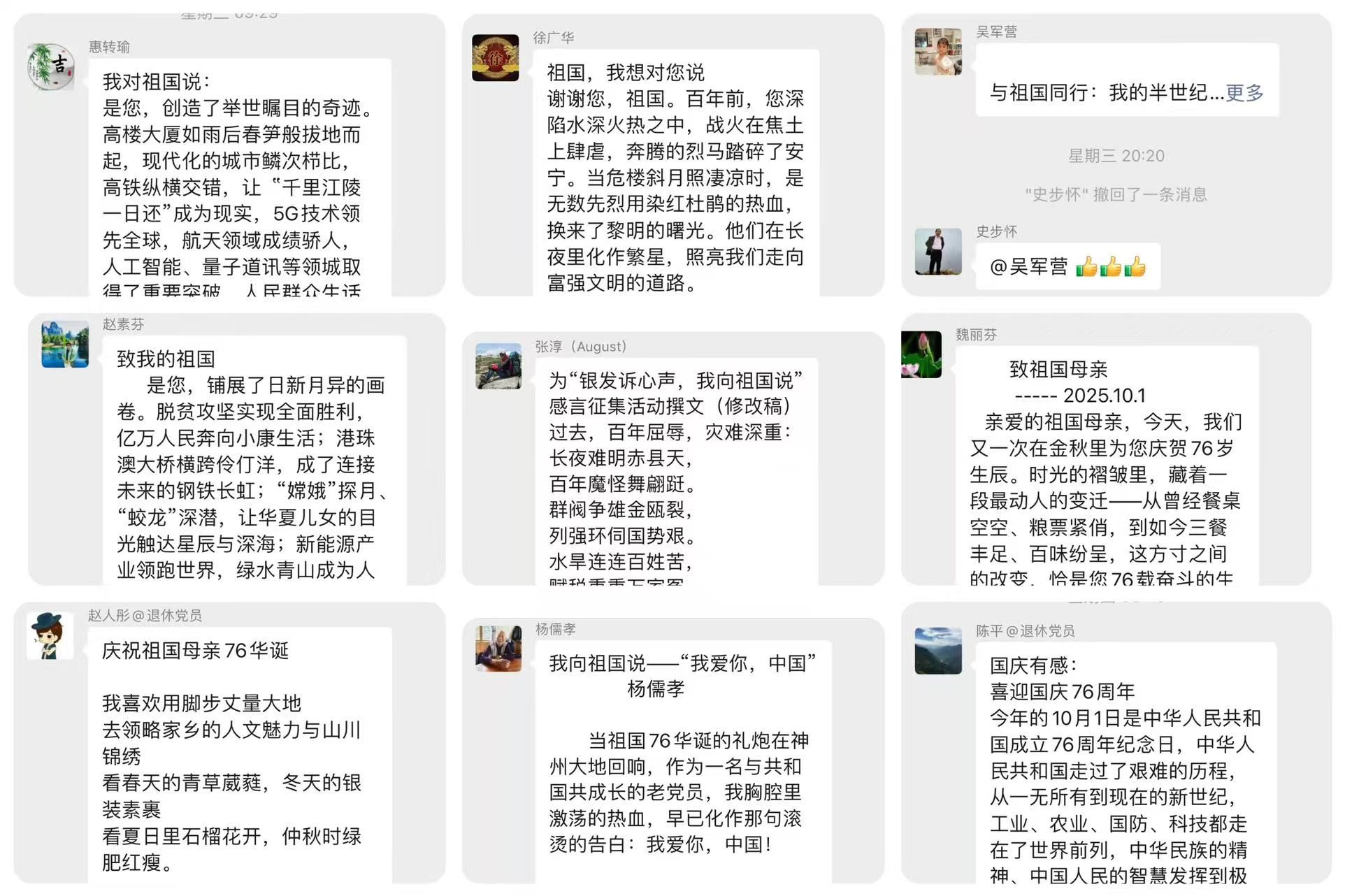 離退處黨委已對(duì)征集到的感言進(jìn)行整理篩選,部分優(yōu)秀作品將通過(guò)離退處公眾號(hào)、家屬區(qū)公告欄等平臺(tái)展示。這些飽含溫度的文字,不僅成為老黨員們抒發(fā)愛(ài)國(guó)情懷、留存時(shí)代記憶的重要載體,更在離退休群體中形成了“憶初心、話擔(dān)當(dāng)、頌祖國(guó)”的良好氛圍,進(jìn)一步增強(qiáng)了退休黨員的歸屬感與凝聚力。