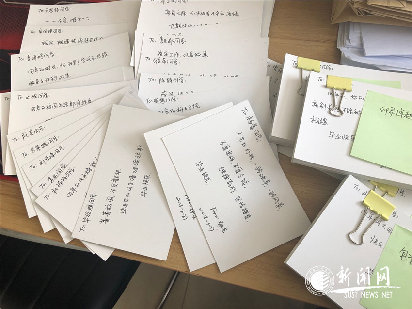 6月29日,在畢業(yè)生即將離校奔赴工作崗位之際,輕工學(xué)院畢業(yè)班輔導(dǎo)員分別用自己的方式為畢業(yè)生送去最真摯的祝福。印刷、包裝、非織造專業(yè)的輔導(dǎo)員張蕓通過(guò)明信片的形式,親手為自己所帶的187名畢業(yè)生寫下美好祝福,造紙、皮革專業(yè)的輔導(dǎo)員麻力為自己所帶的365名學(xué)生寫下真摯的臨別贈(zèng)言,全文共計(jì)1385字,字字飽含真情,催人淚下。