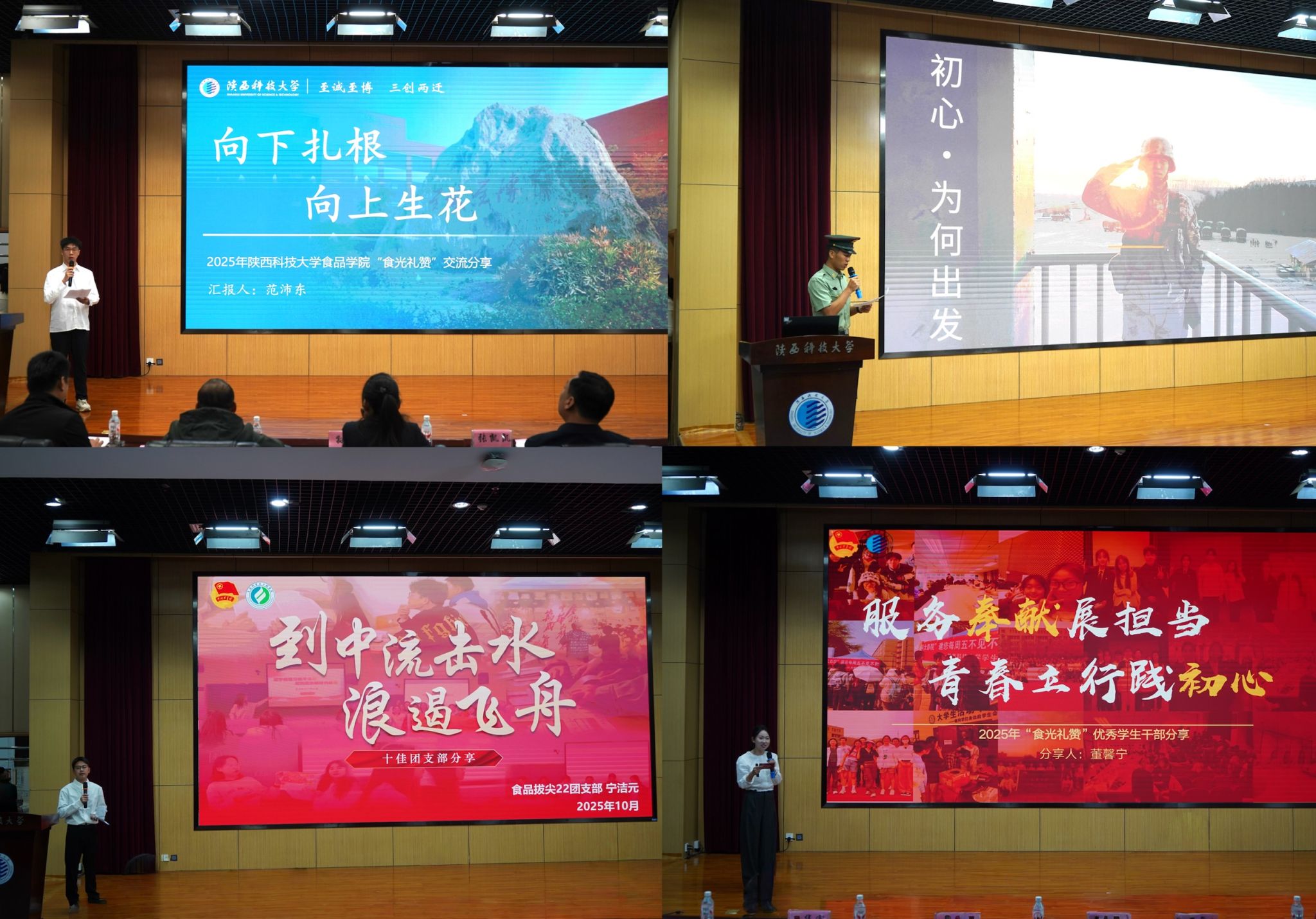 活動以“食光啟航 砥礪前行”為主題,設立“食光”模范獎、“食光”拼搏獎、“食光”衛(wèi)國獎、“食光”凝聚獎、“食光”卓越獎、“食光”桃李獎等十余個類別的獎項,集中表彰上一年度表現(xiàn)優(yōu)秀的典型個人和先進集體。優(yōu)秀學生代表董馨寧、張思雯、三永隆、范沛東和優(yōu)秀宿舍、十佳團支部等先進集體代表分別分享德智體美勞全面發(fā)展的青春故事及集體建設經(jīng)驗。