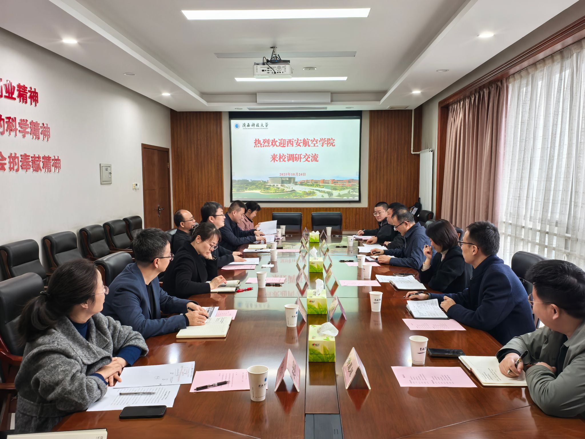 10月24日下午,西安航空學(xué)院發(fā)展規(guī)劃處處長楊少斌帶領(lǐng)由人事處、教務(wù)處、學(xué)科辦、科技處等部門6人組成的調(diào)研組,來我校進行調(diào)研交流。學(xué)校相關(guān)單位有關(guān)同志參加座談會。發(fā)展規(guī)劃處處長龐博主持會議。