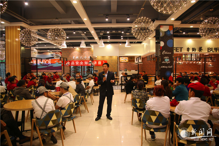 根據(jù)省教育廳《關(guān)于開(kāi)展2018年秋季學(xué)校衛(wèi)生工作專項(xiàng)督查的通知》和《關(guān)于聯(lián)合開(kāi)展學(xué)校食品安全與傳染病防控專項(xiàng)督查工作的通知》,為進(jìn)一步加強(qiáng)學(xué)校食品安全監(jiān)管工作,提升我校餐飲食品安全衛(wèi)生水平,規(guī)范餐飲服務(wù)行業(yè)經(jīng)營(yíng)行為,9月19日,后勤集團(tuán)飲食服務(wù)中心邀請(qǐng)西安市未央?yún)^(qū)未央湖食藥監(jiān)管理所監(jiān)督員呂靖來(lái)校,為飲食服務(wù)中心249名餐飲從業(yè)人員進(jìn)行食品安全細(xì)則的講解。講座由飲食服務(wù)中心主任馬玉清主持。