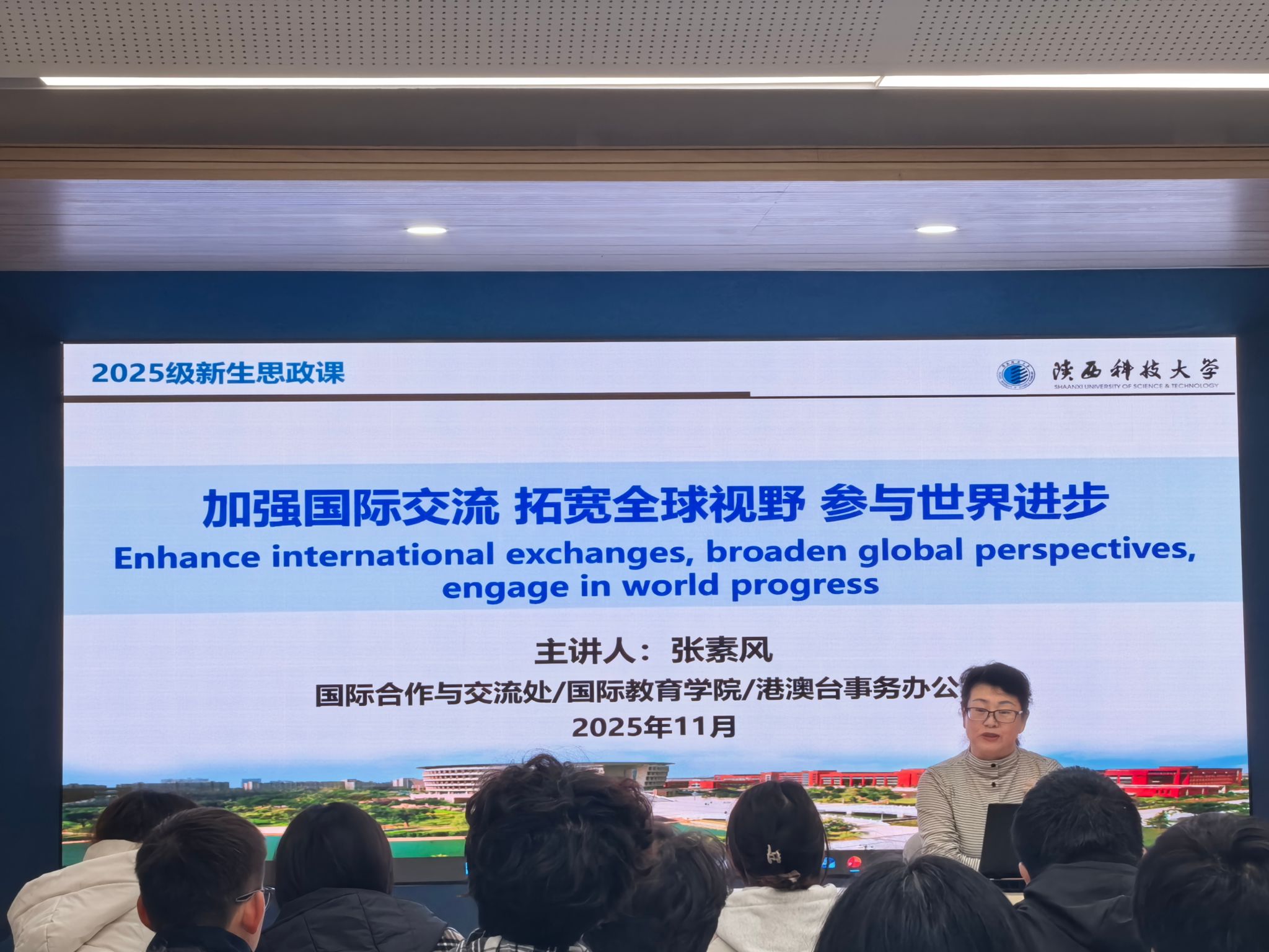 11月16日,國際合作與交流處處長、國際教育學(xué)院院長、港澳臺(tái)辦公室主任張素風(fēng)以《加強(qiáng)國際交流,拓寬全球視野,參與世界進(jìn)步》為題,為輕工科學(xué)與工程學(xué)院2025級(jí)新生帶來了一堂生動(dòng)的思政課。報(bào)告通過鮮活的案例和詳實(shí)的數(shù)據(jù),向新生們闡述了在全球化背景下加強(qiáng)國際交流的重要性。