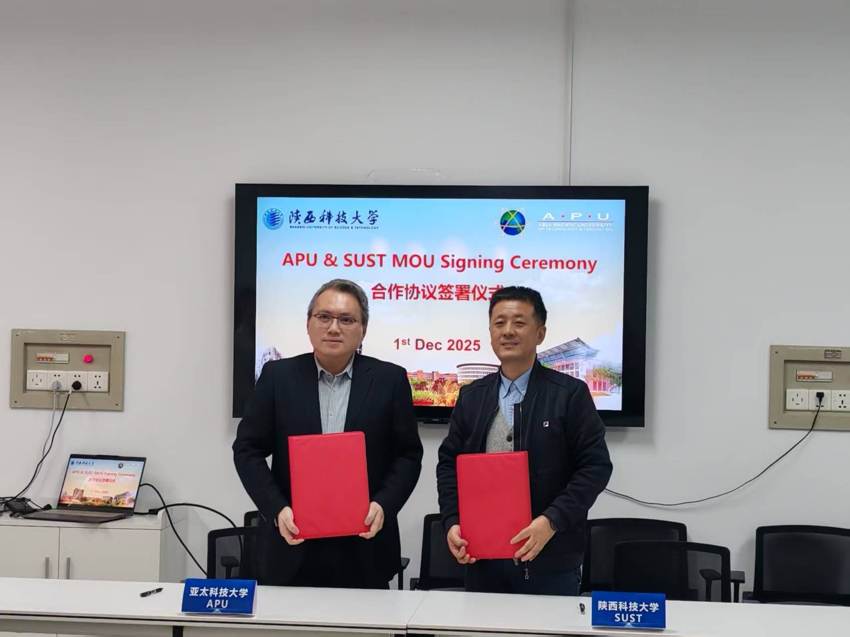 12月1日,應我校國際合作與交流處、機電工程學院(智能制造與機器人工程學院)、高端自動機械與智能微機電系統(tǒng)陜西省高等學校學科創(chuàng)新引智基地邀請,馬來西亞亞太科技大學一行來我校交流座談,并簽署合作備忘錄。亞太科技大學科技學院高級院長鄧家輝教授、朱漢璋教授、國際部主任龍仕湘、饒怡羚,我校國際合作與交流處副處長劉雨凡、機電工程學院院長楊立軍、副院長袁越錦和師生代表參加了本次簽署儀式,會議由袁越錦主持。