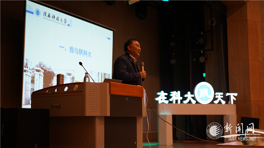 講座伊始,董繼先教授從“我與陜科大”談起,分享了自己的求學(xué),教學(xué)科研,行政工作等個人經(jīng)歷,特別介紹了自己與科大相識相知相伴的數(shù)十載。他以古人的人生觀,價值觀,世界觀來表明自己的立場,又談到了習(xí)近平總書記所提出的“命運共同體”“一帶一路”等理念,由“家國情懷”談到“科大情懷”,表達(dá)了自己對科大無限的熱愛。
