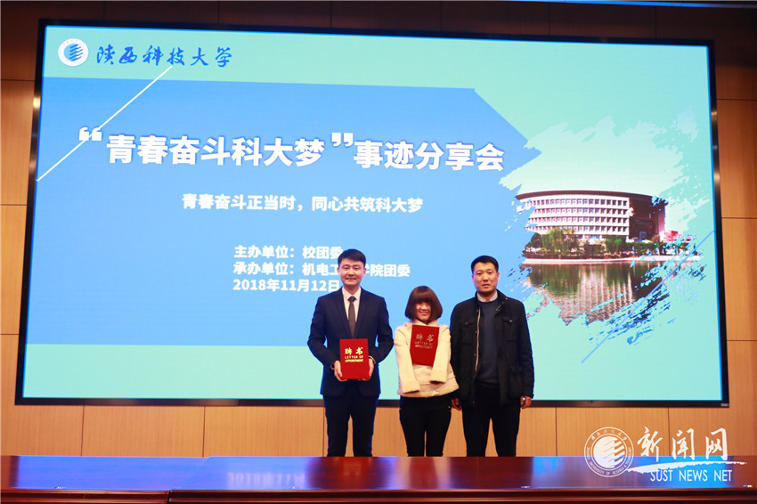 為深入貫徹習(xí)近平總書記“深化中國夢學(xué)習(xí)教育,關(guān)鍵是講好故事”指示精神,緊密結(jié)合青年思想實際,充分發(fā)揮身邊典型示范引領(lǐng)作用,激勵我校大學(xué)生志存高遠(yuǎn)、奮發(fā)有為。11月12日晚在圖書館一樓報告廳,由校團(tuán)委主辦、機(jī)電工程學(xué)院團(tuán)委承辦的“青春奮斗科大夢”事跡分享會成功舉行。校團(tuán)委副書記李鵬、蔡國敏,機(jī)電學(xué)院院長助理王政軍、祁懷遠(yuǎn),各二級學(xué)院團(tuán)委書記以及全校550多名團(tuán)員代表出席了本次大會。
